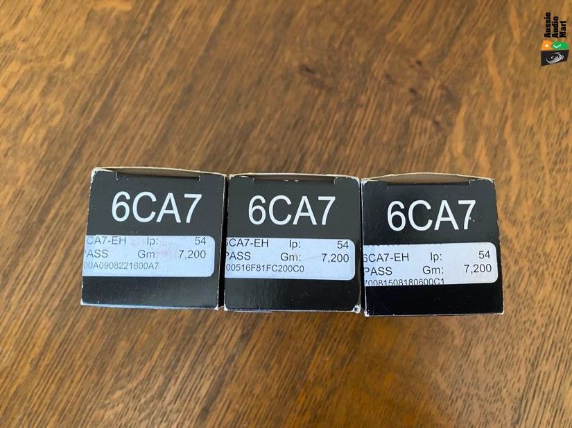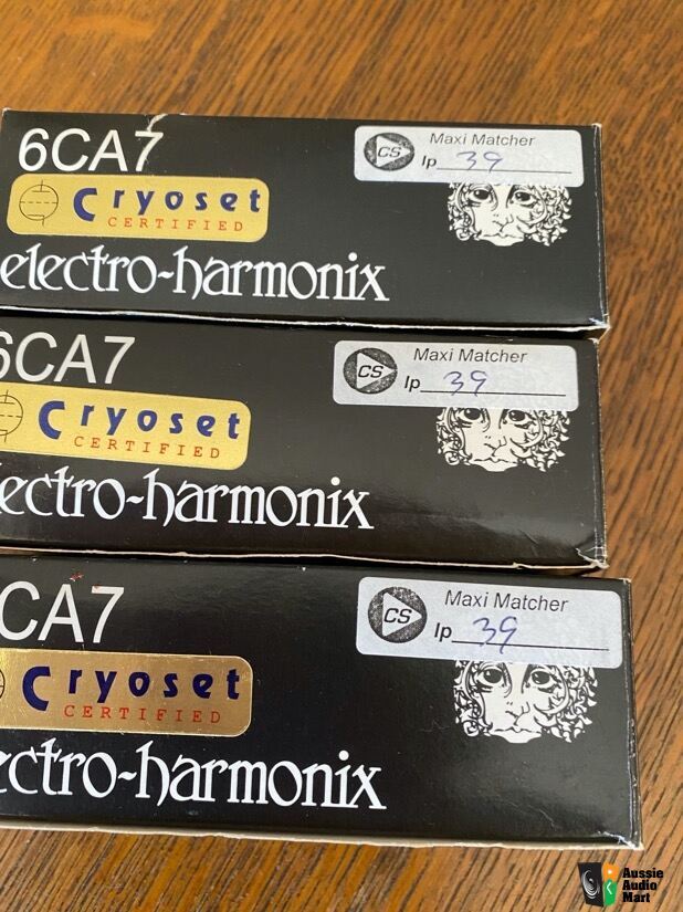3 Electro -Harmonix 6CA7 Fat Boy Cryo frozen unused Power Tubes.Bought about  2012 as spare back-up for mono amps one used to replace faulty tube, leaving me with 3 !!
