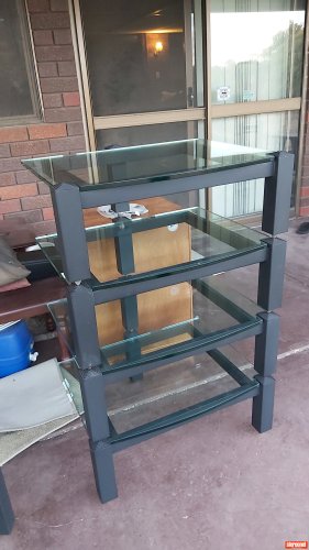 4 shelf Lovan sovereign rack with 12mm toughened glass shelves.