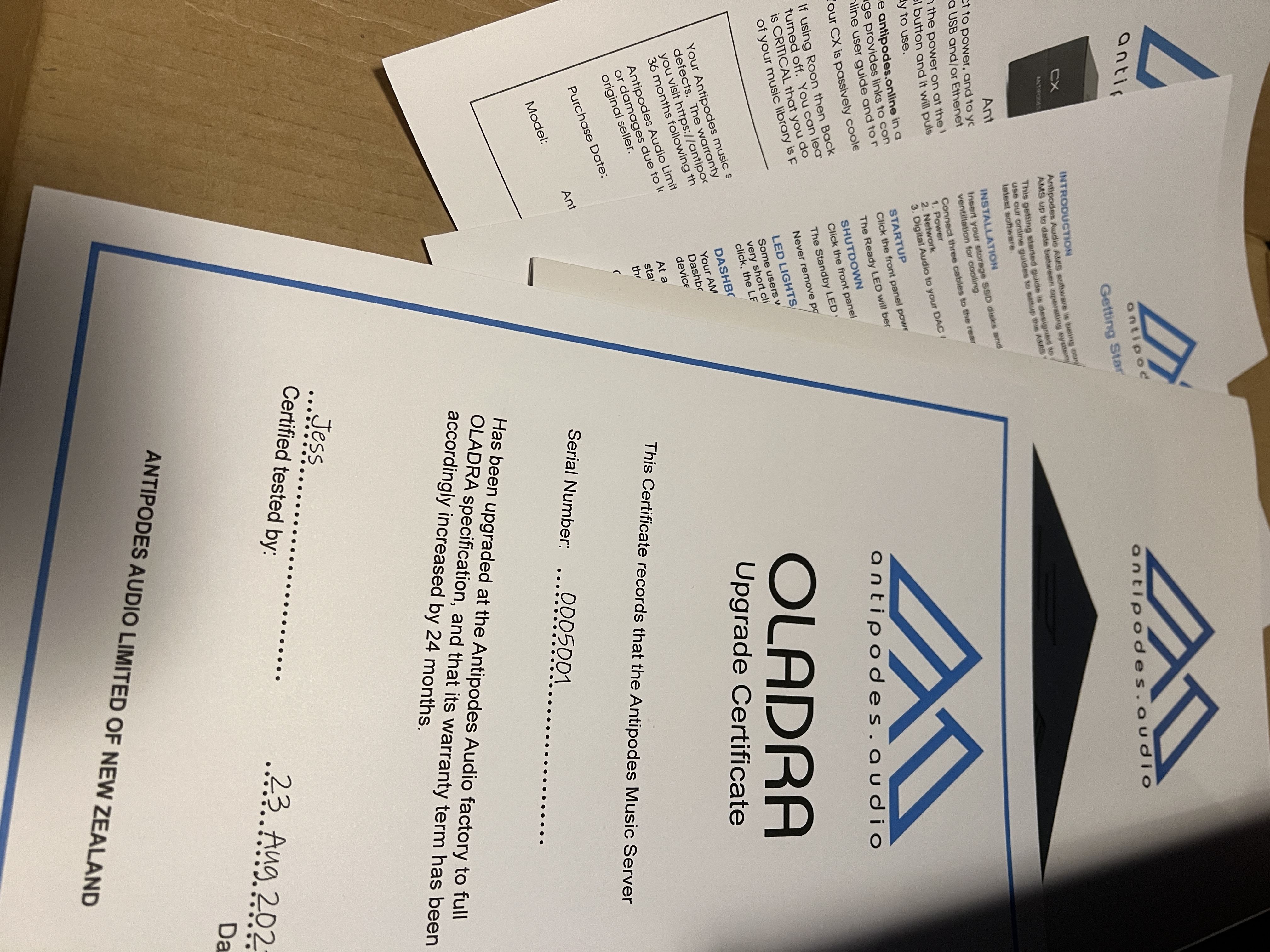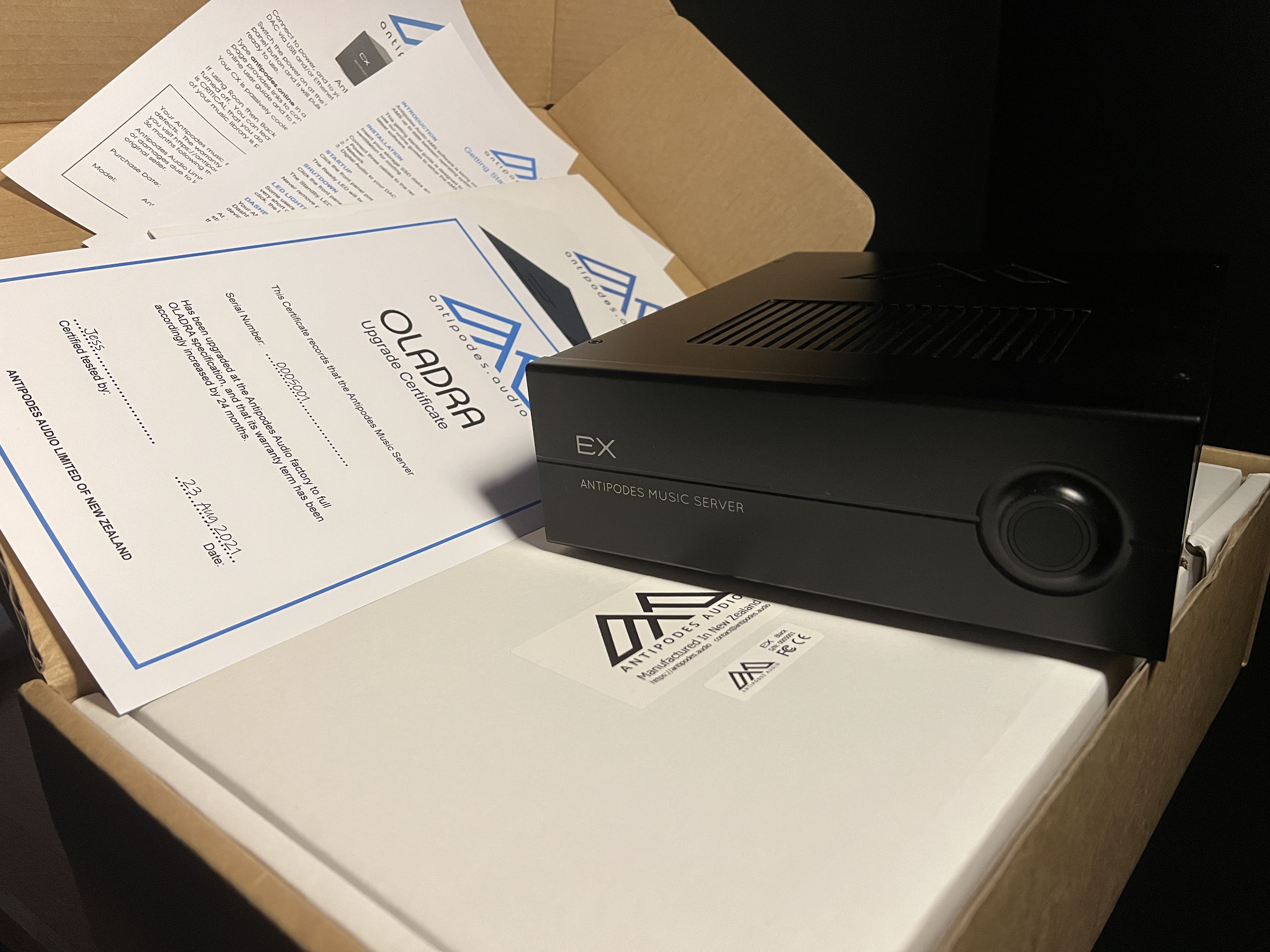 One of my best friends who heard my original EX picked up an EX OLADRA and the improvement was huge. I eventually hunted one down (the work was performed at Antipodes factory in New Zealand on 23 August 2021 (Please see photos showing the date of the new power supply OLADRA upgrade).