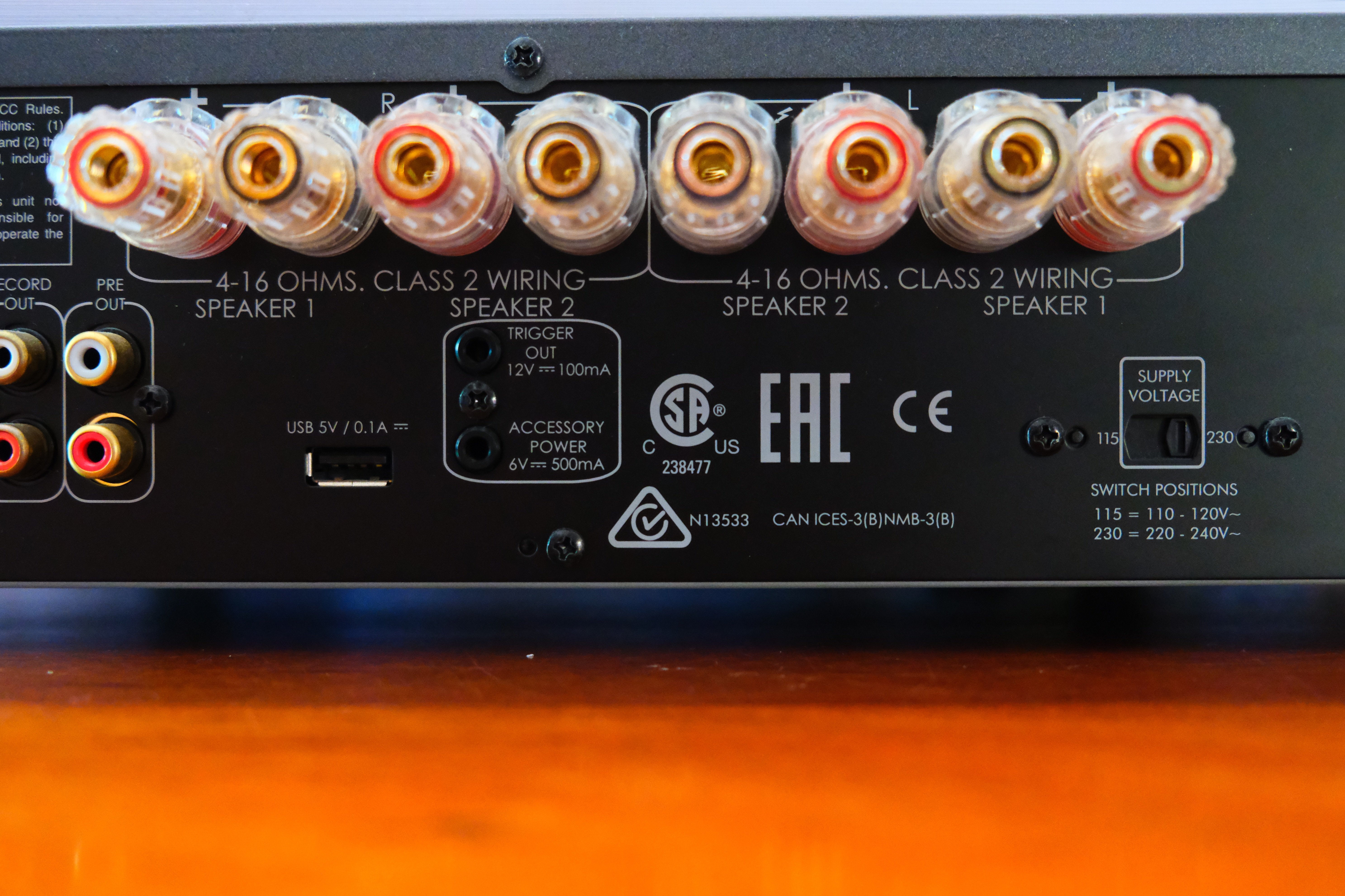 Two pairs of output speaker terminals