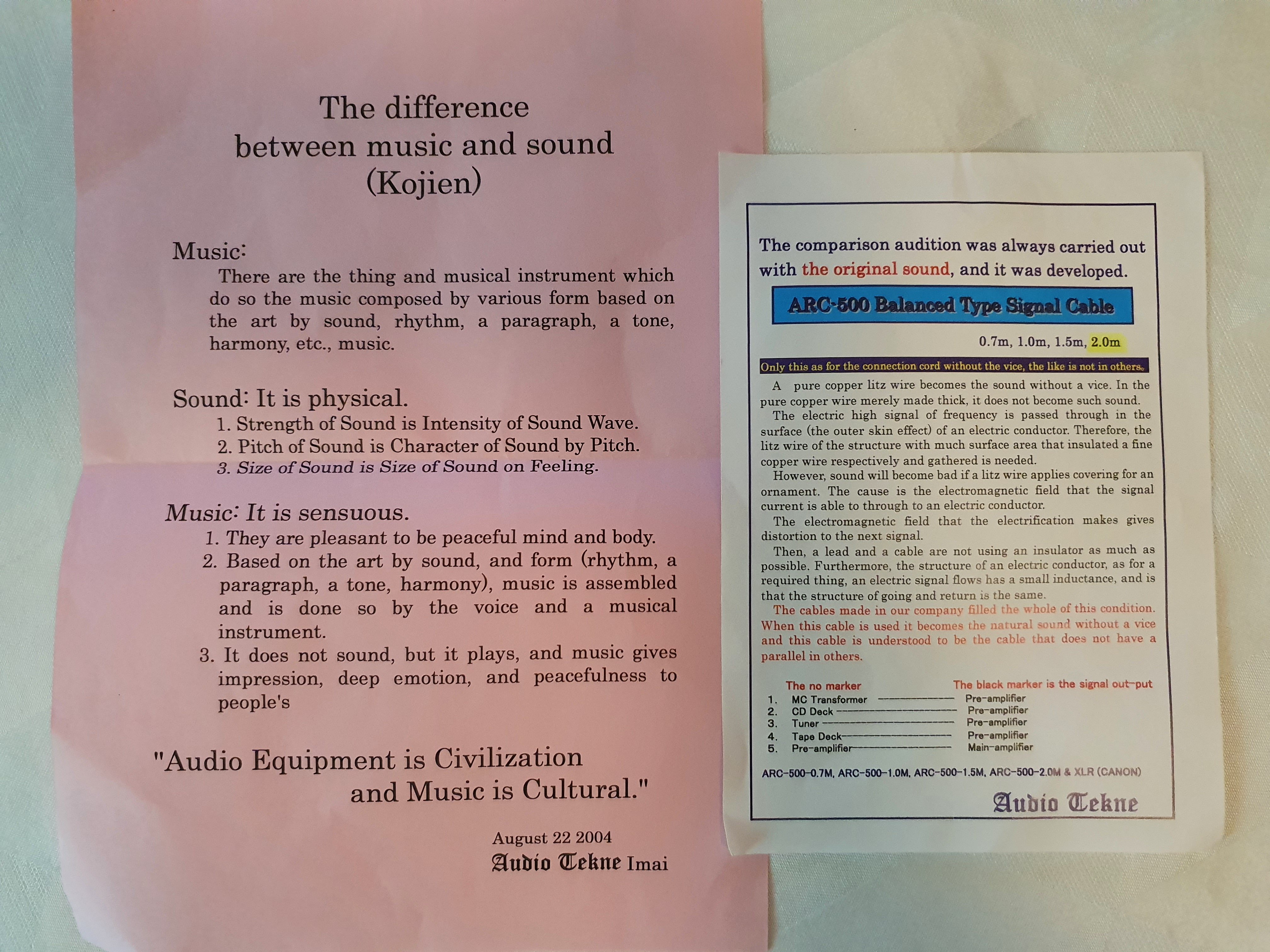 ARC-500 pure copper litz wire interconnects from Japanese high-end manufacturer, Audio Tekne.
