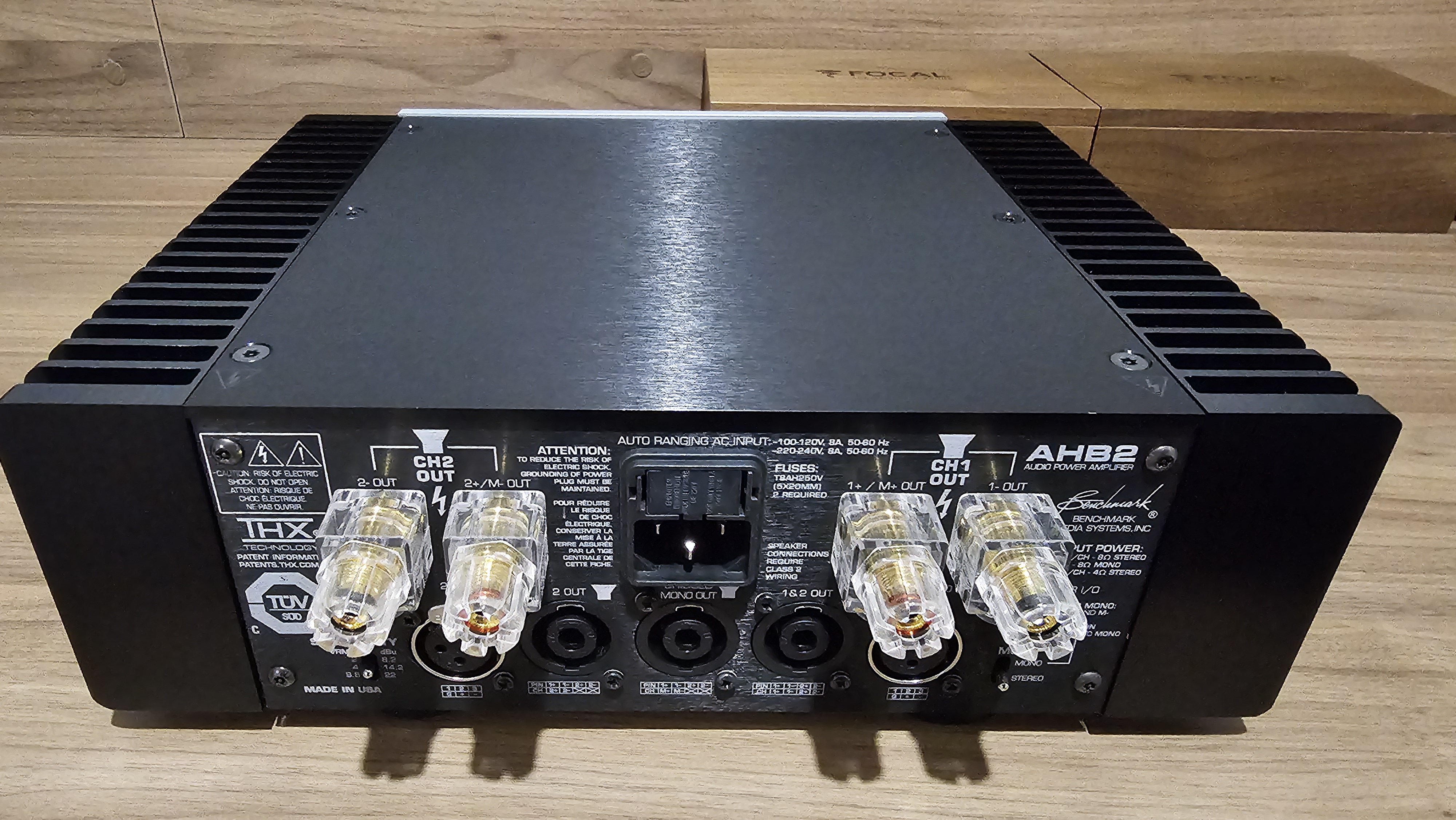 Up for grabs is a Benchmark AHB2 amplifier in excellent, possibly as new condition. If there is a mark on it, I can't see it. It comes with its original packaging. I am only offloading this amplifer to get a AHB2 with a black face plate so that it aesthetically better integrates with my other equipment. These are superb amplifiers. Best specs in an amplifier with 100 watts x 2 into 8ohms power output. Very detailed, resolving and accurate. Can be bridged to become a monoblock. Also listed elsewhere. Be quick. These units generally move quickly.