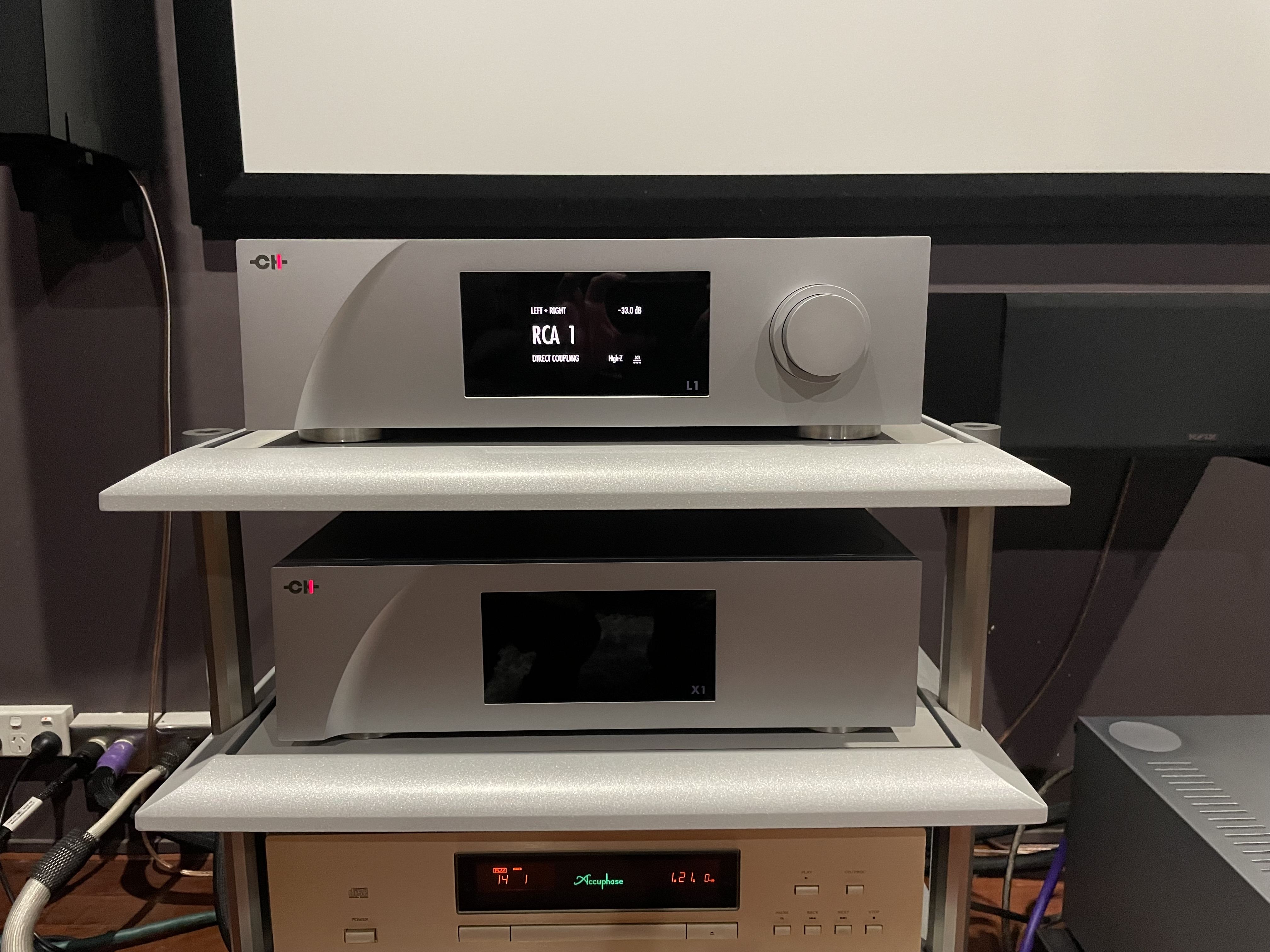 For sale is a superb CH Dual Mono Preamplifier (L1) with external power supply (X1) and the matching Stereo amplifier (M1.1).