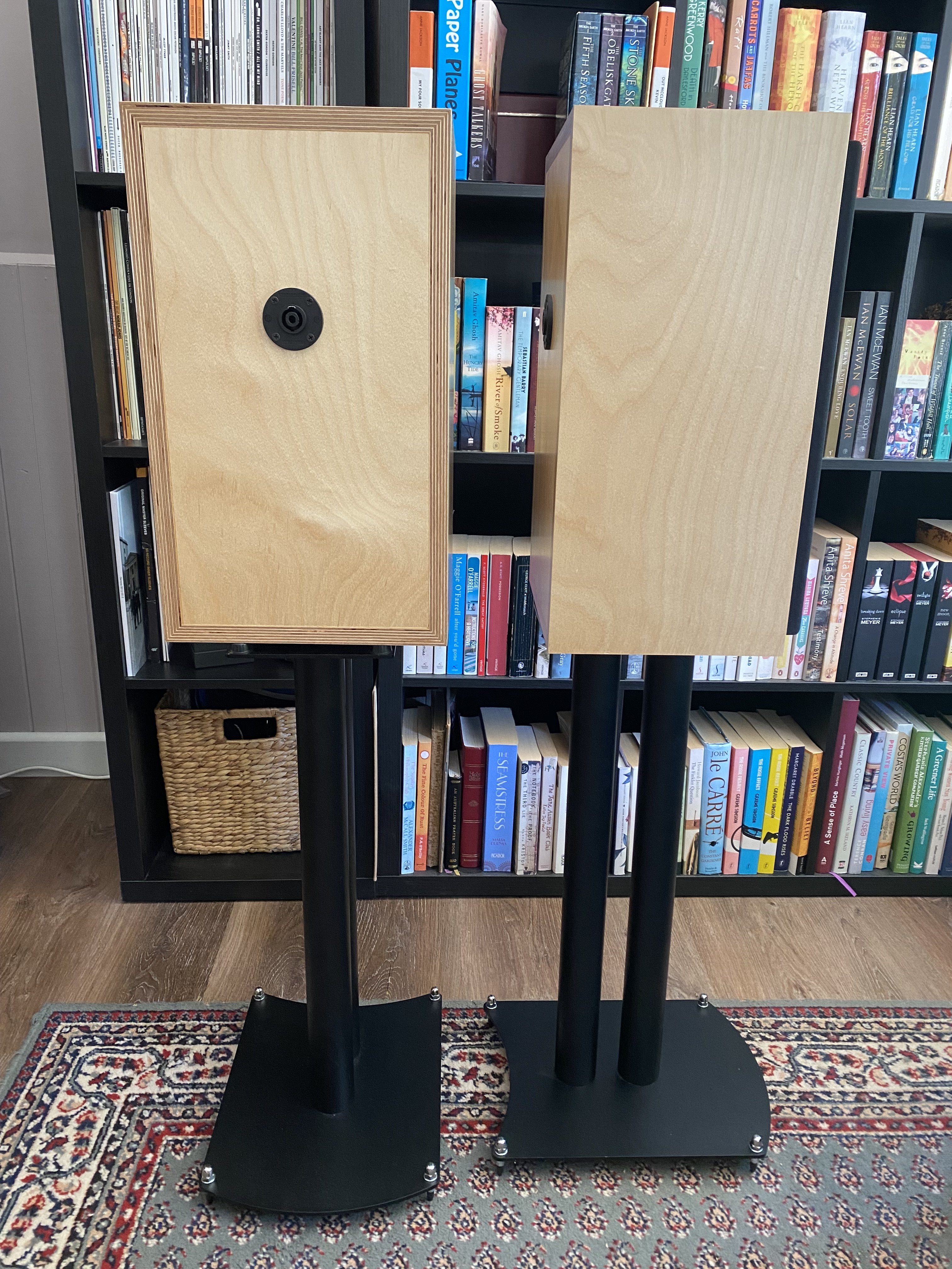 The mounted pair are housed in professionally built 18mm birch-ply cabinets made by Aranmar Acoustics in Melbourne