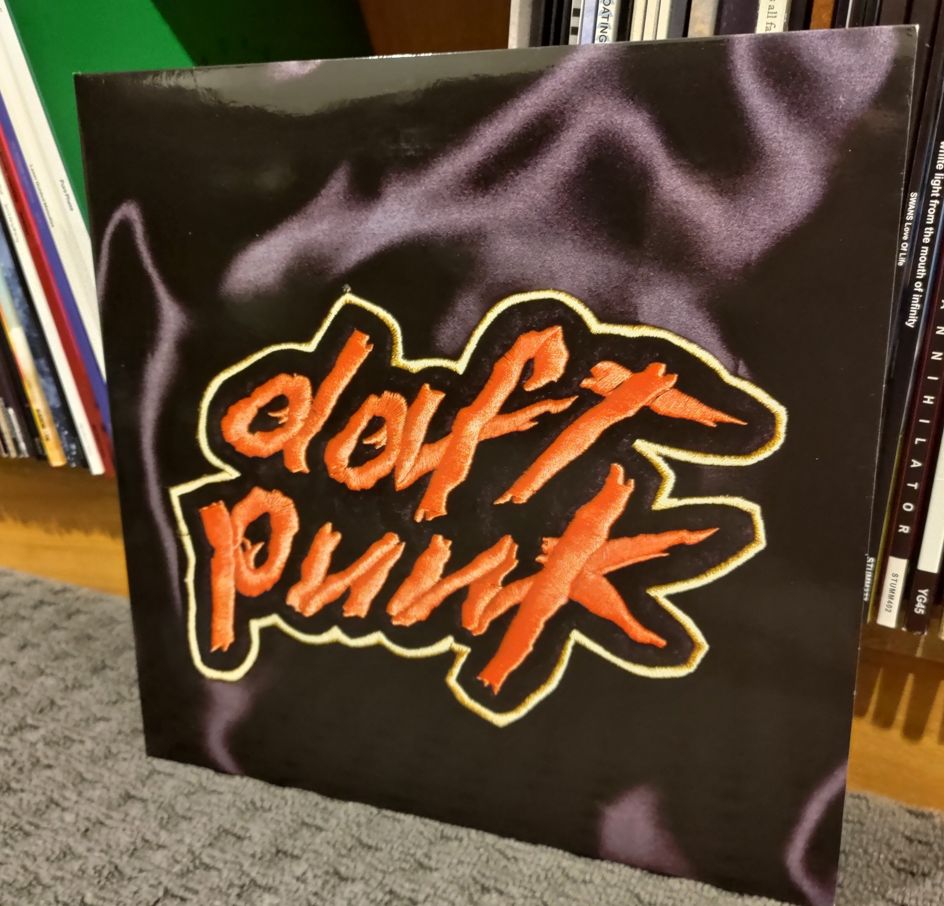 This is the classic Daft Punk album Homework, unplayed 2LP in a glossy gatefold that is clean but go for the heavy tip-on so shows small shelf wear.