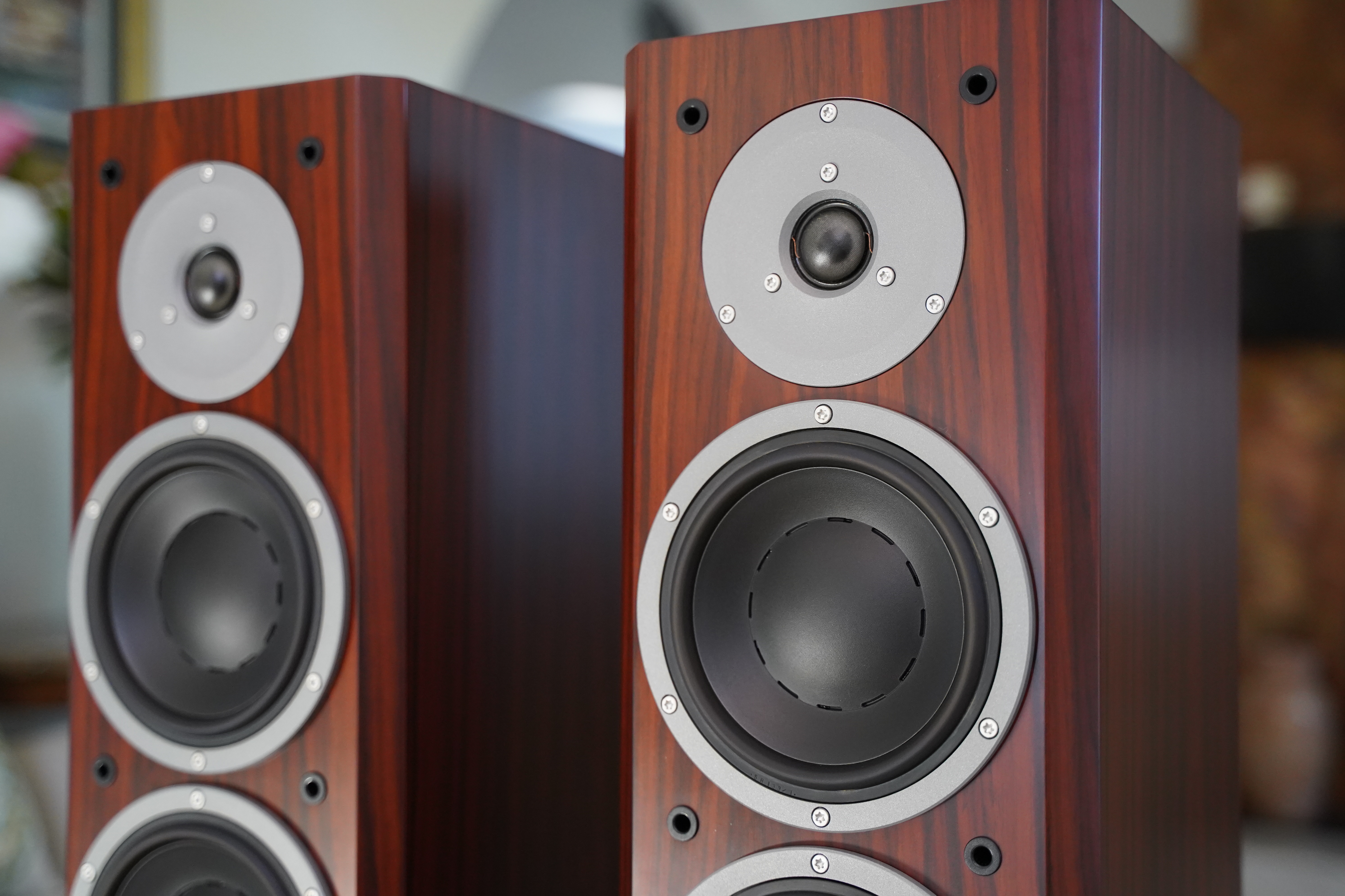 Dynaudio Focus 260 Floorstanding Speakers in beautiful Satin Rosewood finish. I had these speakers since new, rarely used and extremely well cared for, from smoke and pet free home. No marks, scratches or dings. All original drivers are perfect and sound fantastic. Comes with original packaging, cloth covers and accessories.