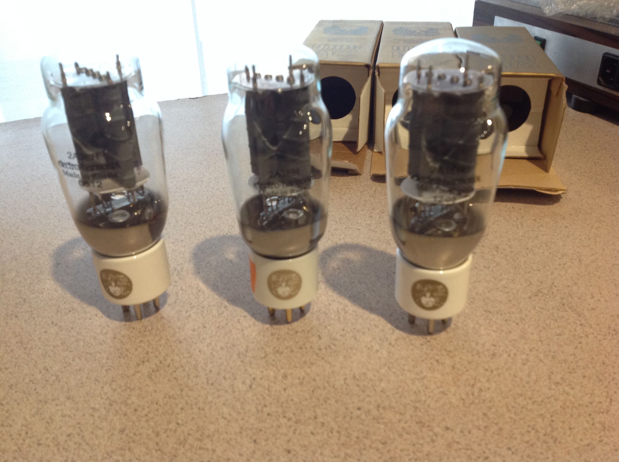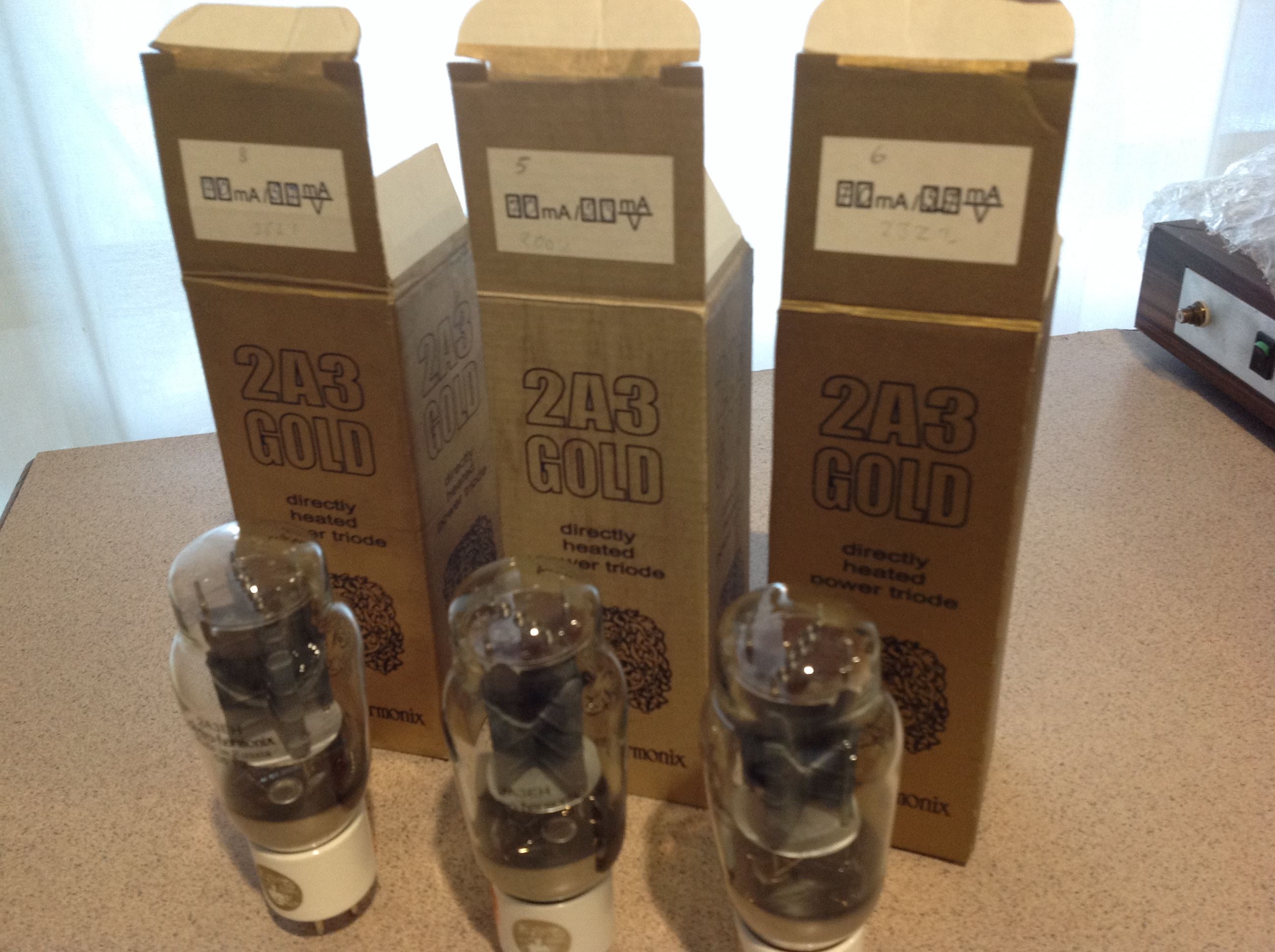 3 x Electro-harmonix 2A3 Gold tubes in original boxes and un-used. All very closely matched.