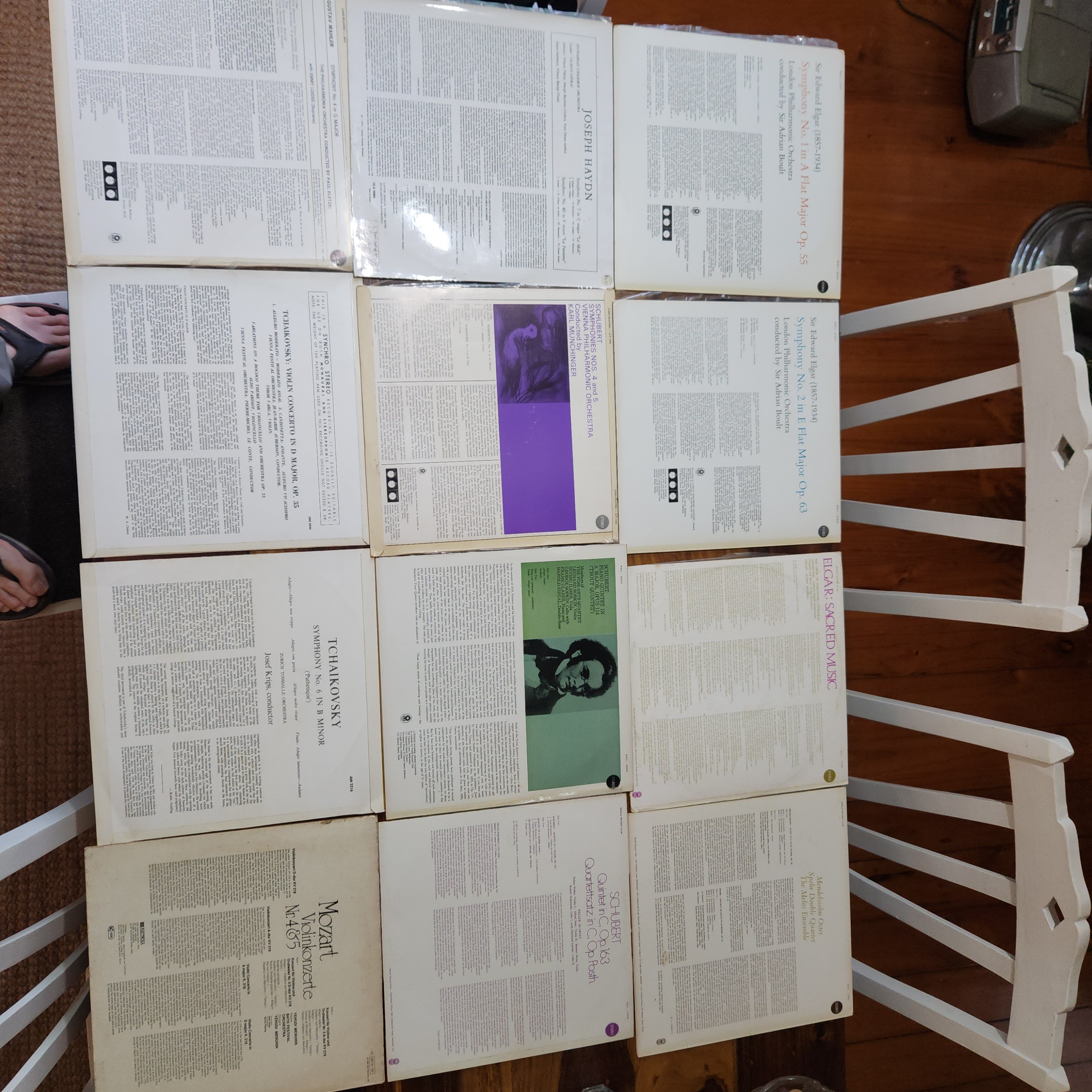 A great summer listening special, a great selection of early, baroque, romantic, & modern composers, with the emphasis on Mozart. The majority of the pressings are World Record Club (pressed by EMI Australia), plus one or two DG, EMI, etc.