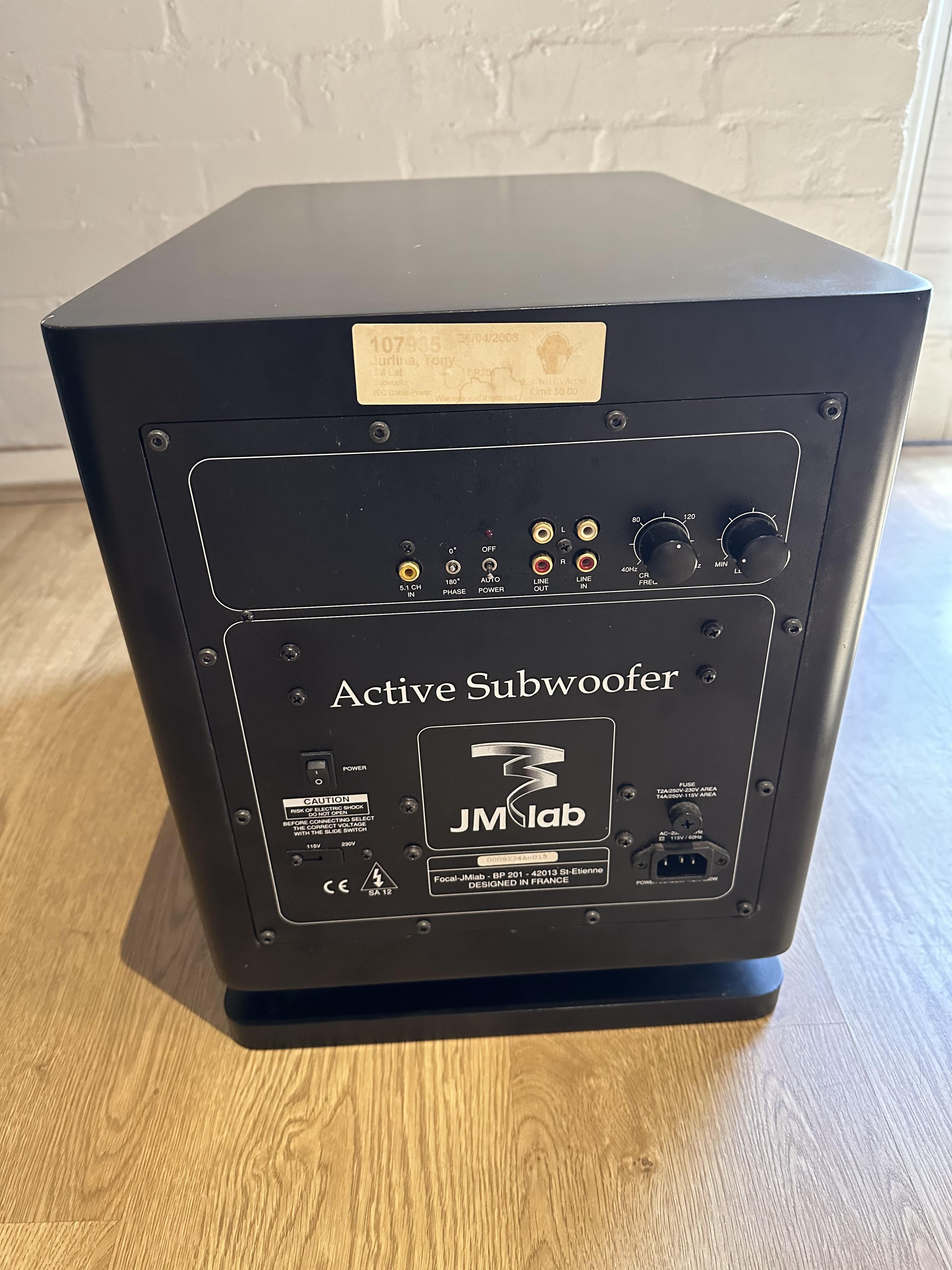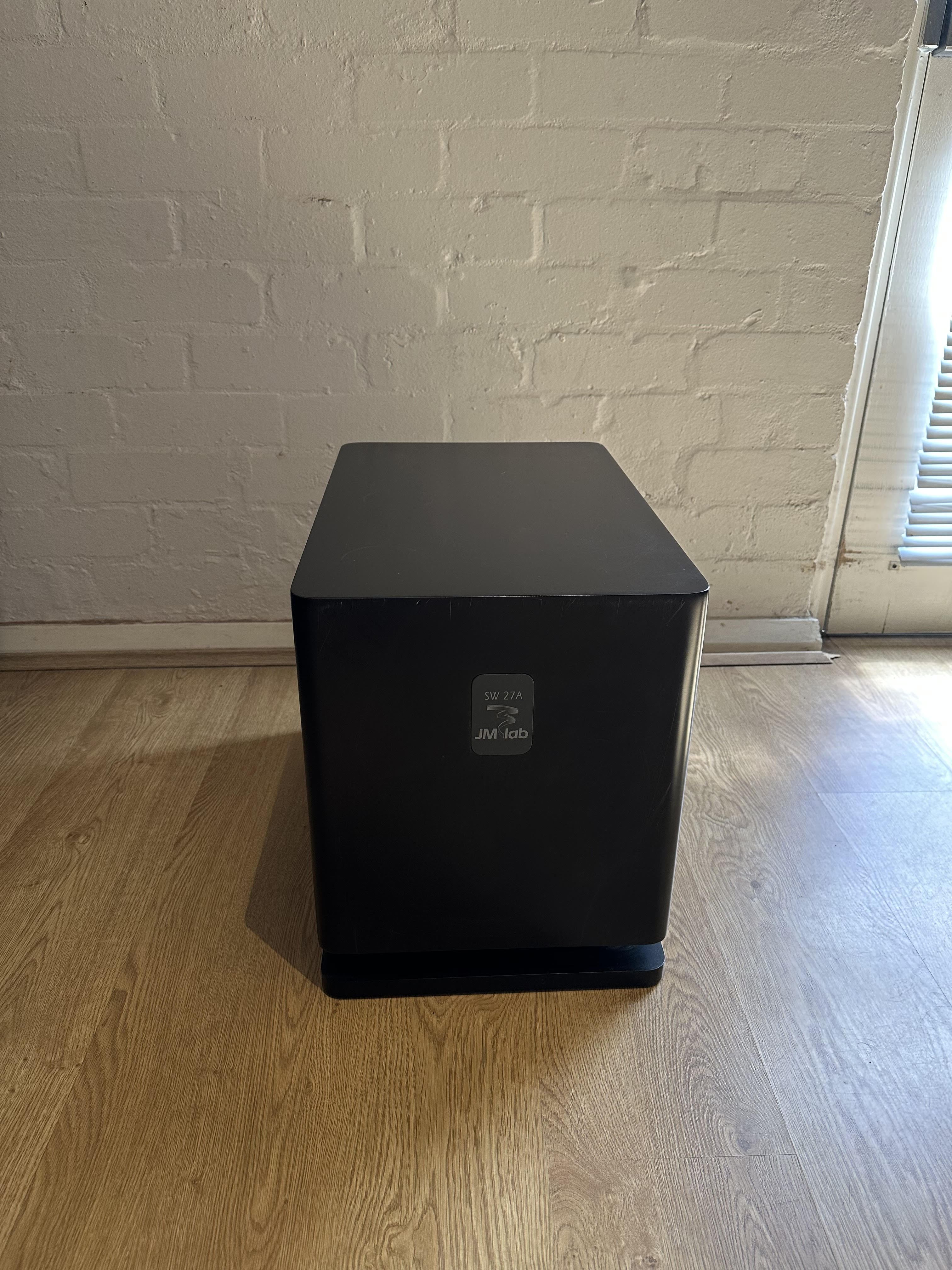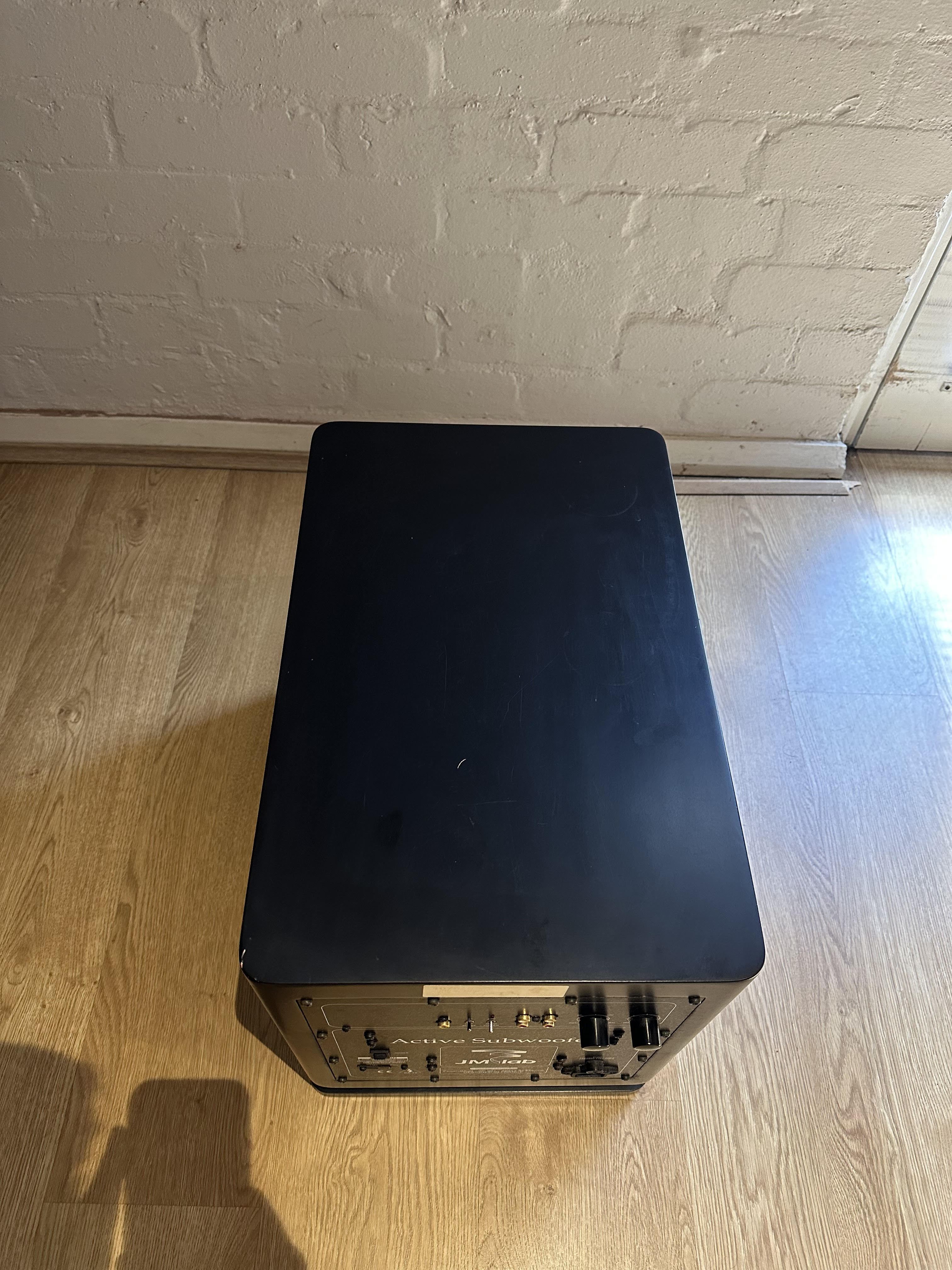 Great little down-firing ported sub. No longer being being used as intended, but instead as a coffee table. Has a number of surface scratches, but works fine. Welcome to test it before purchasing.