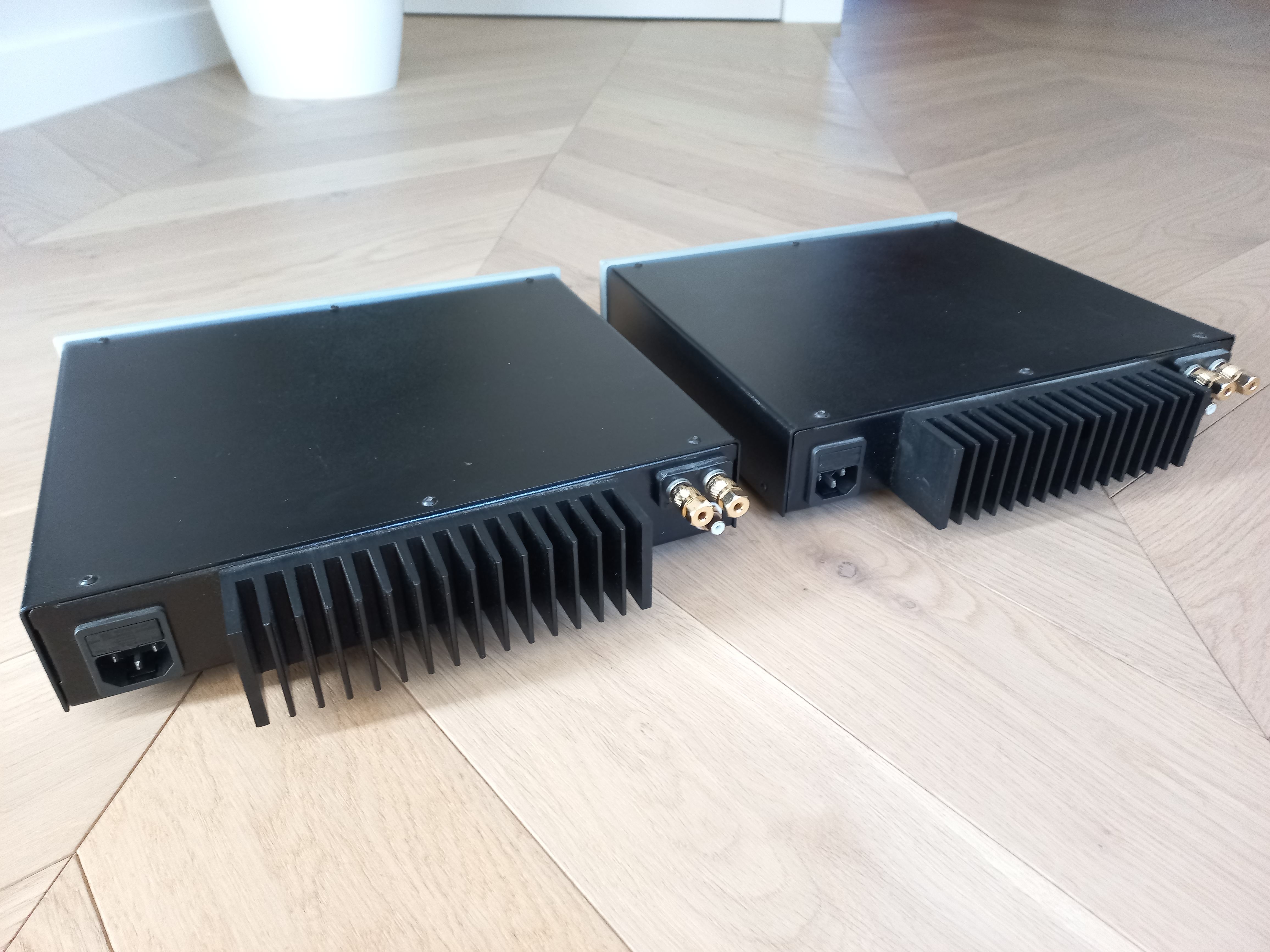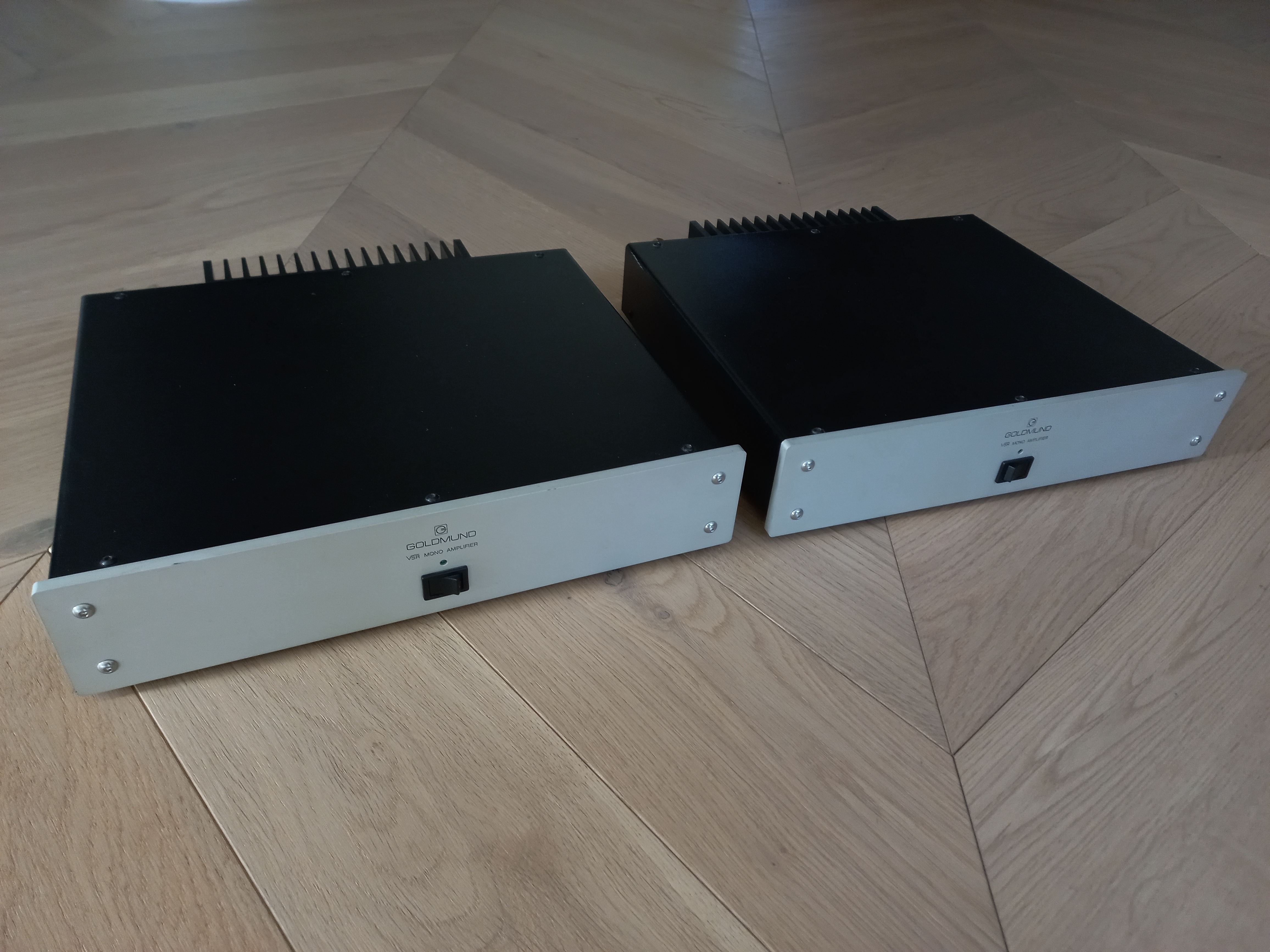 Pair of Goldmund SRM monoblocks in very good condition. Great sound, very transparent and super fast. Rated power 125wpc into 8 ohms from these super-compact chassis. Super reliable amps complete with original boxes and manual, and these are Australian delivered models. I also had the original cheesy plastic binding posts updated with superior Cardas Rhodium speaker posts at considerable cost. See specification photo taken from owners manual.