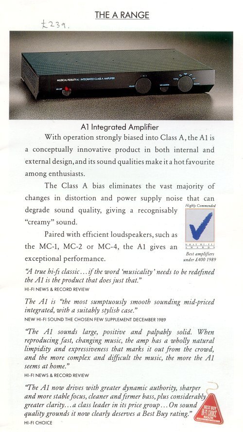 Up for sale is my Musical Fidelity A1 Class A Intergrated Amp.