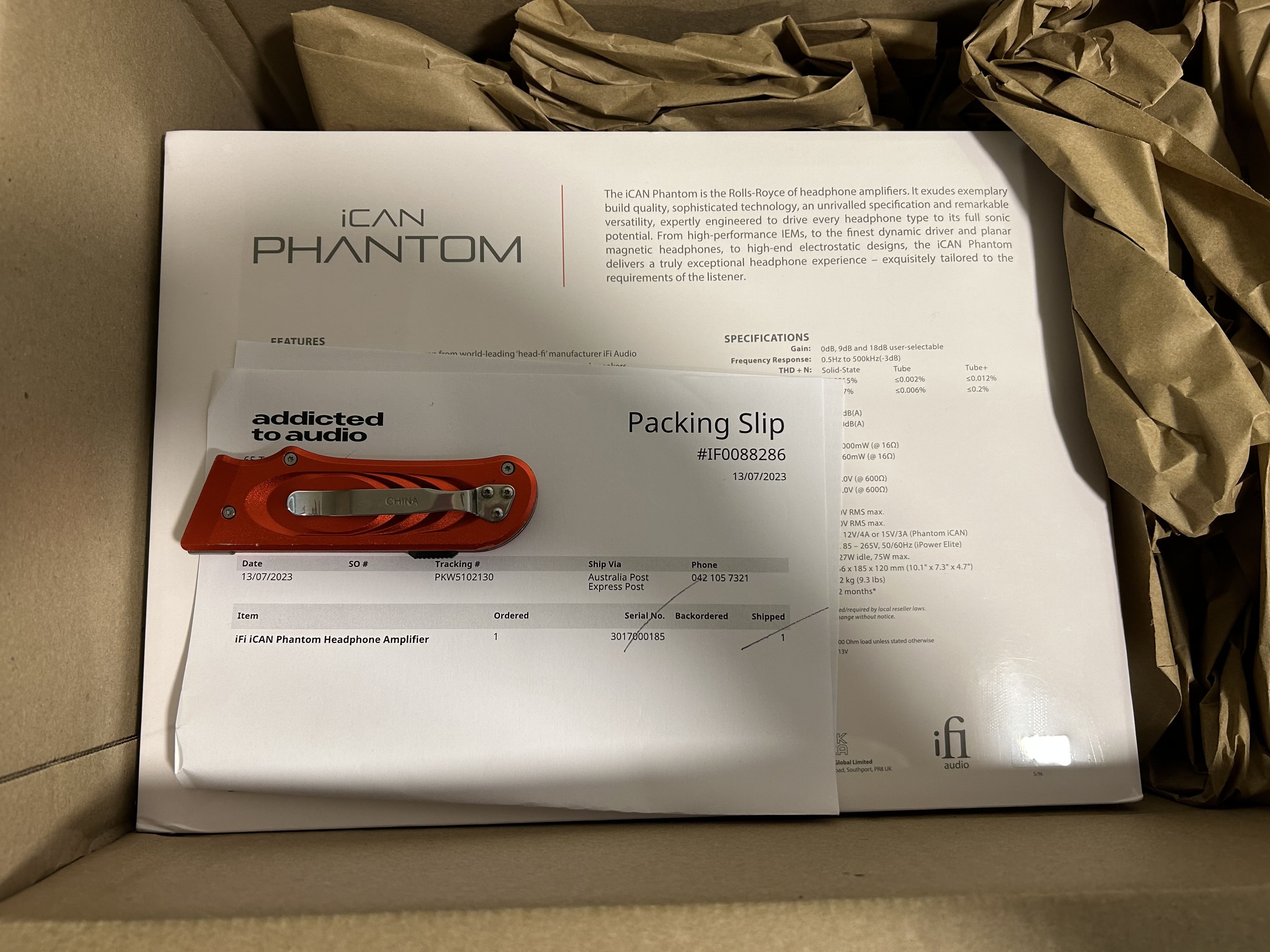 iFi audio iCAN Phantom Headphone Amplifier - New in Box - you can see the cellophane wrap and packing slip in photos. Please note that this is not the model I reviewed recently. I've included a couple of photos from that review to show what it looks like.