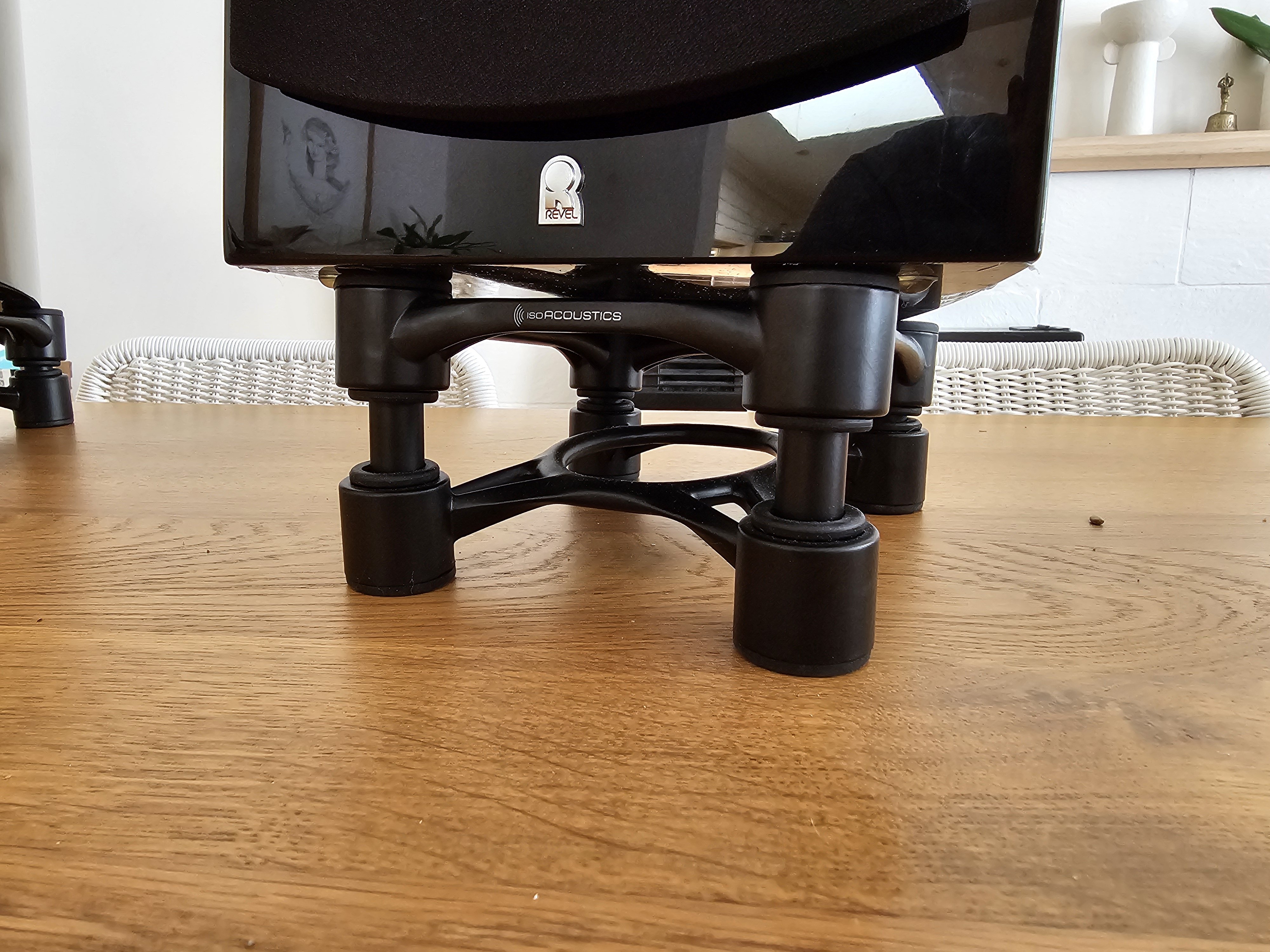 Internal reflections are vibrations reflecting back up the speaker cabinet which causes smear. Smear is a result of artefacts replicated in both channels which are perceived to be in the middle, causing the stereo image to collapse. The IsoAcoustics isolators reduce internal reflections to eliminate smear. The result is an improved stereo image of natural spatial sound.
