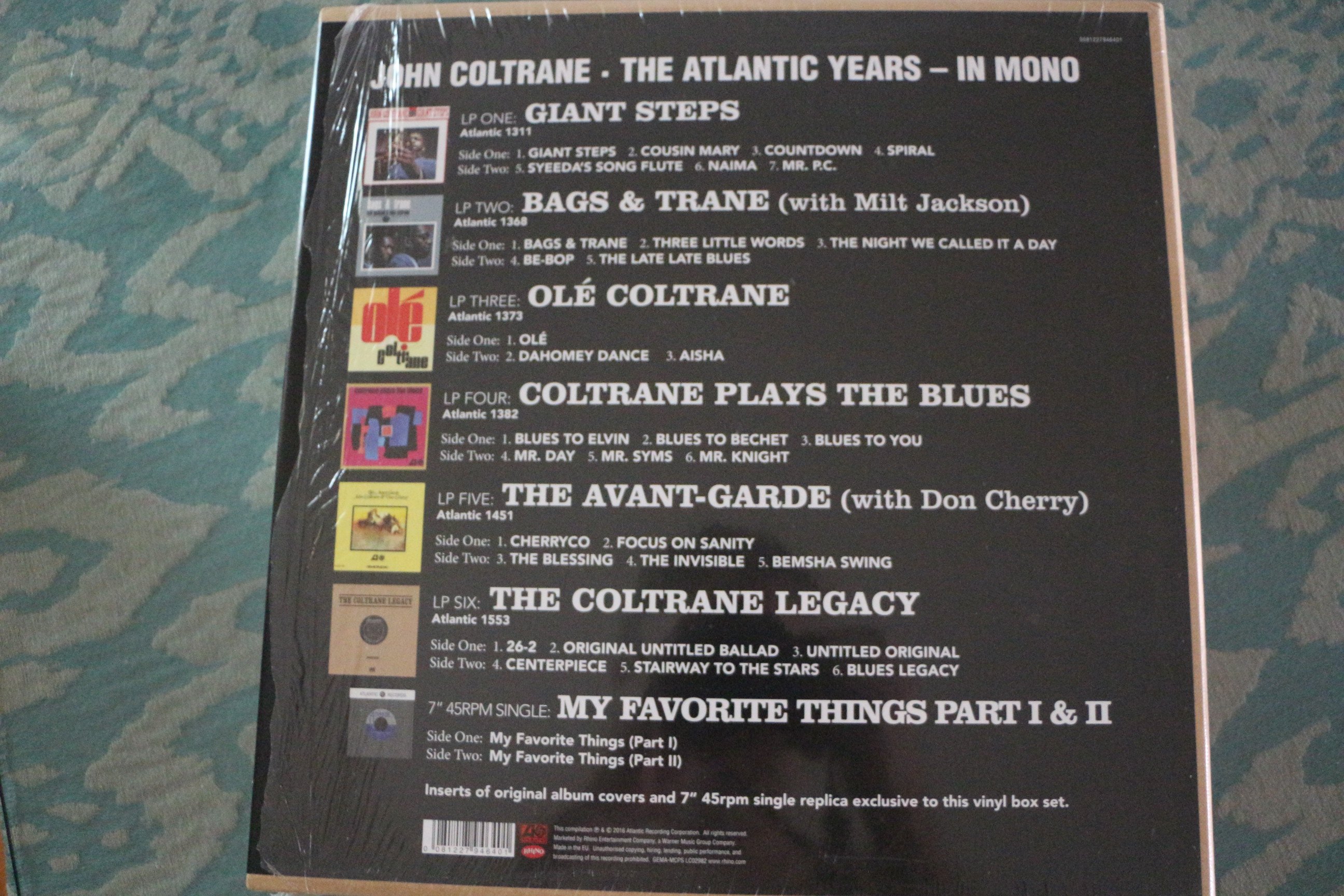 Further Information: John Coltrane-The Atlantic Years-Mono Vinyl Box Set.6 Albums plus 45 of My Favorite Things and book in a Cloth bound case . Albums were played once.45 never played. 2016 Out of Print.