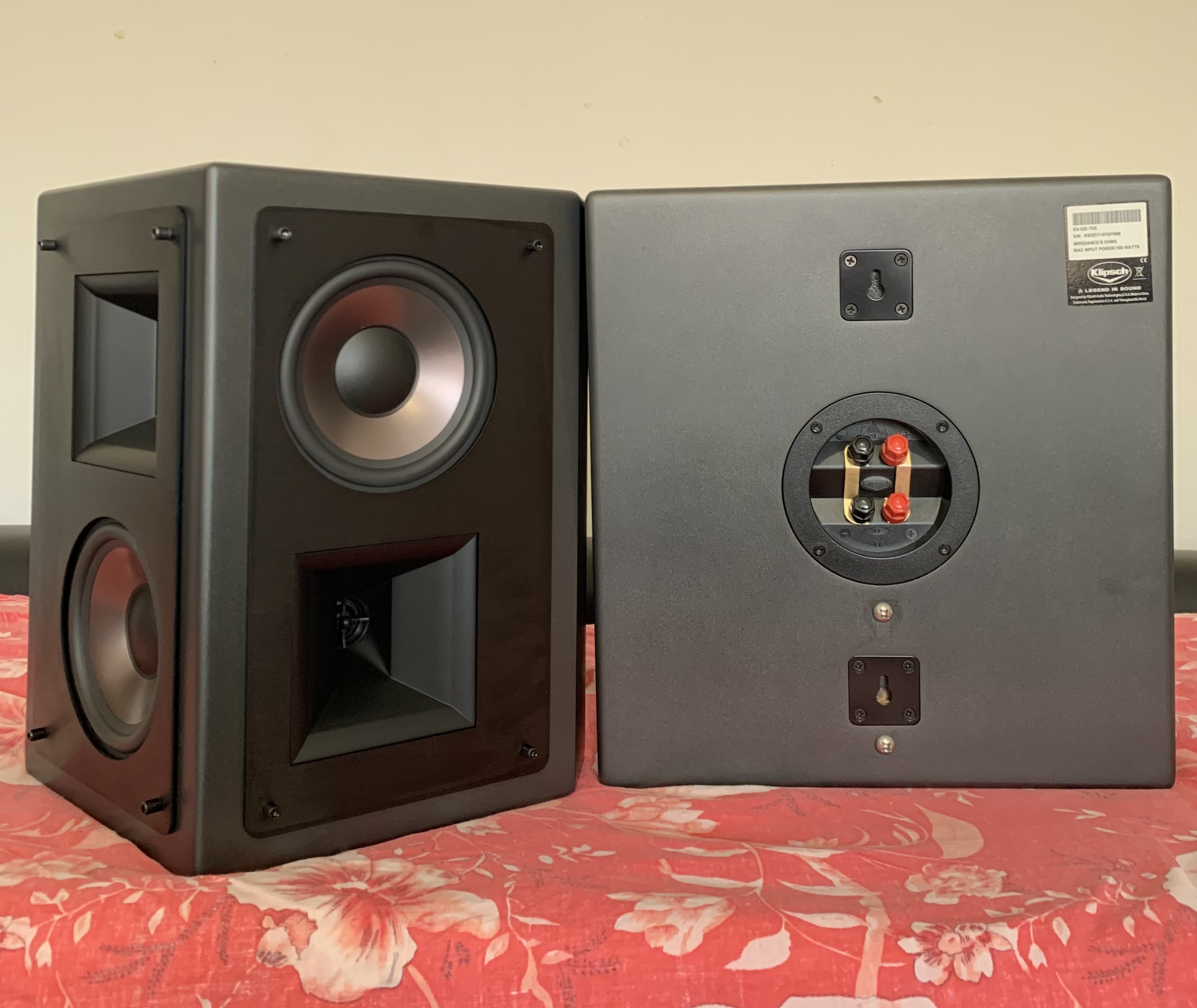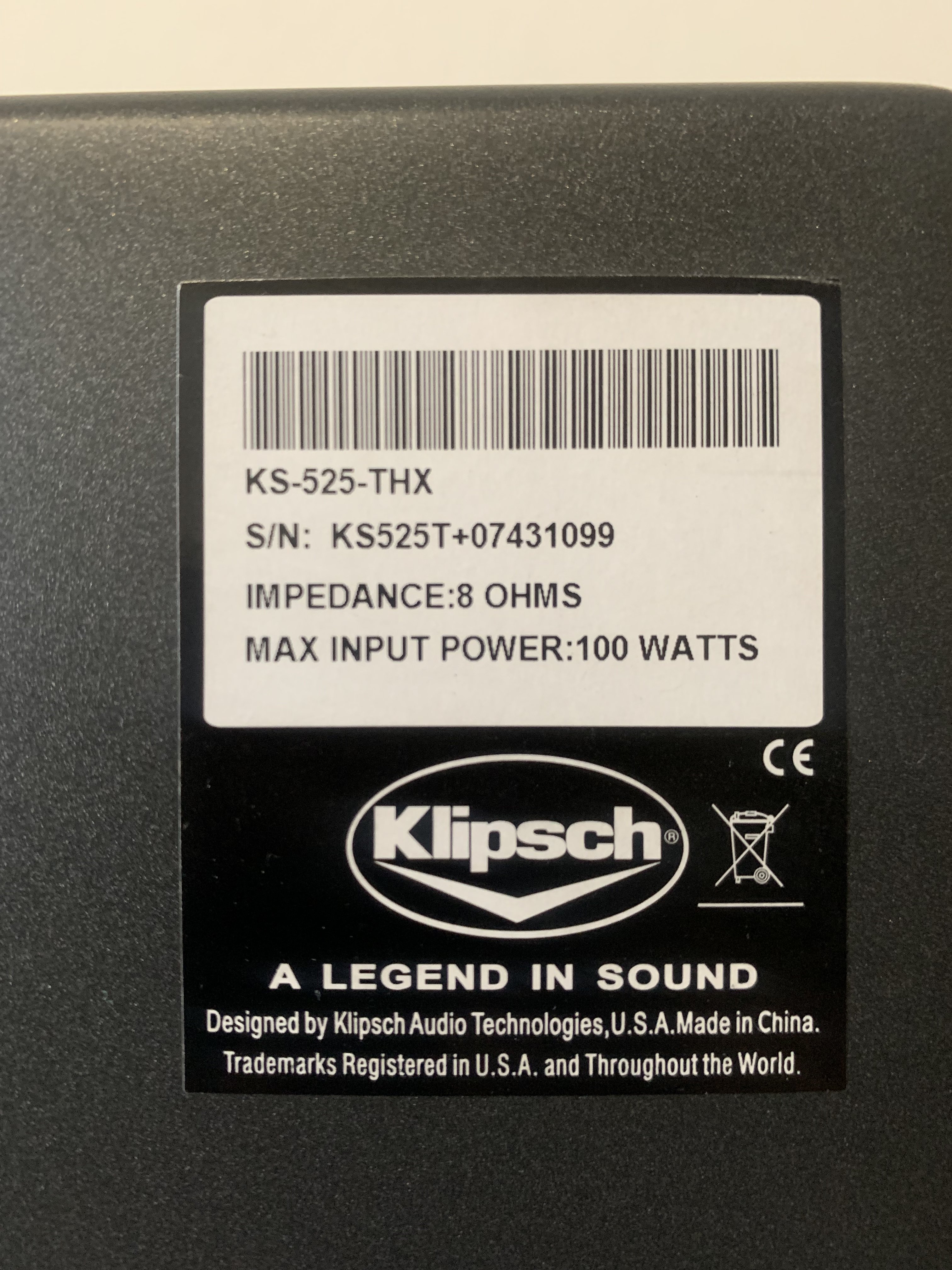 This surround's sealed enclosure has the dado and rabbet construction used in Klipsch professional speakers, ensuring cabinet integrity in suspended applications. The Omni-Mount suspension points facilitate wall or ceiling mounting using standard hardware.