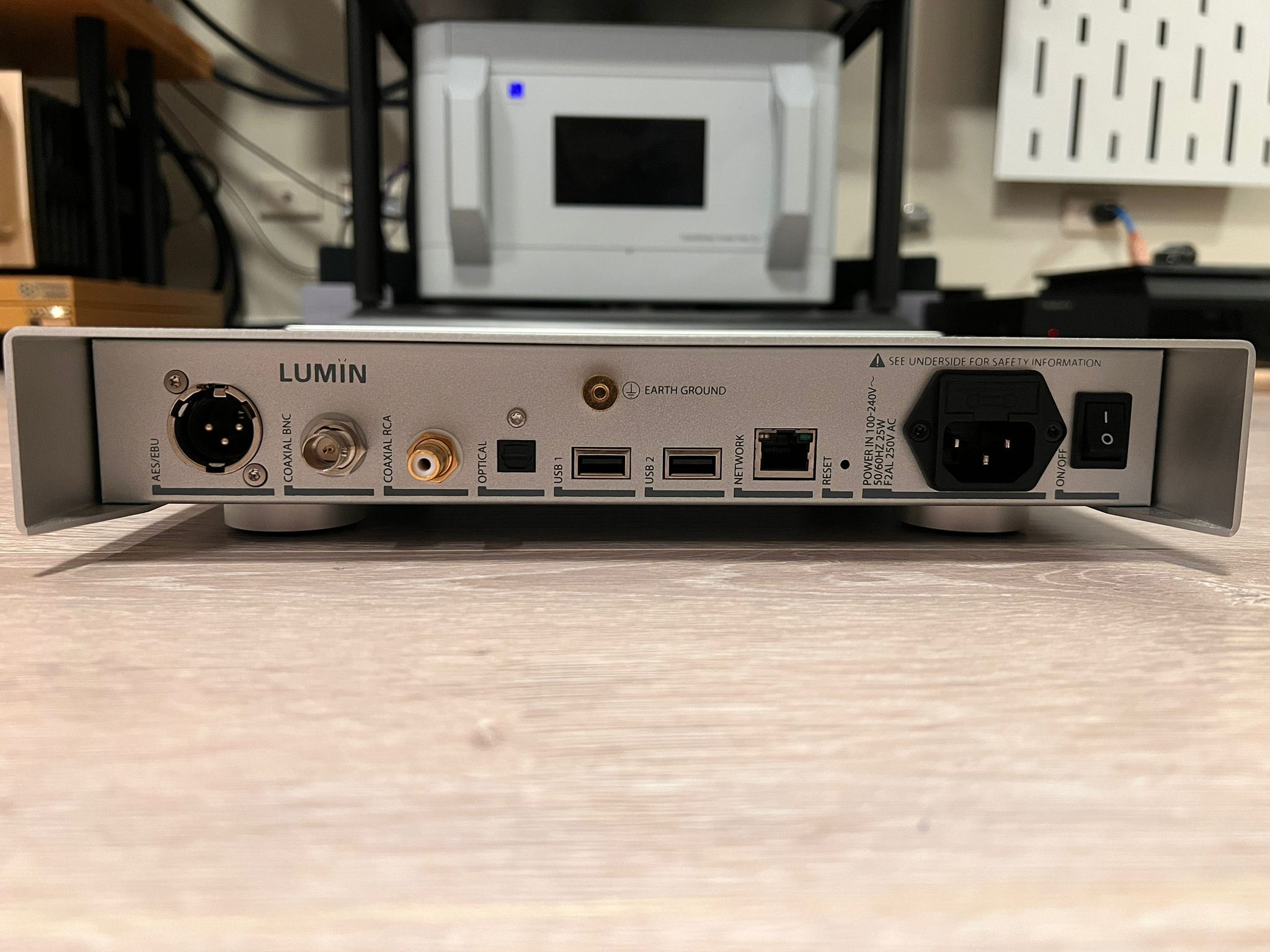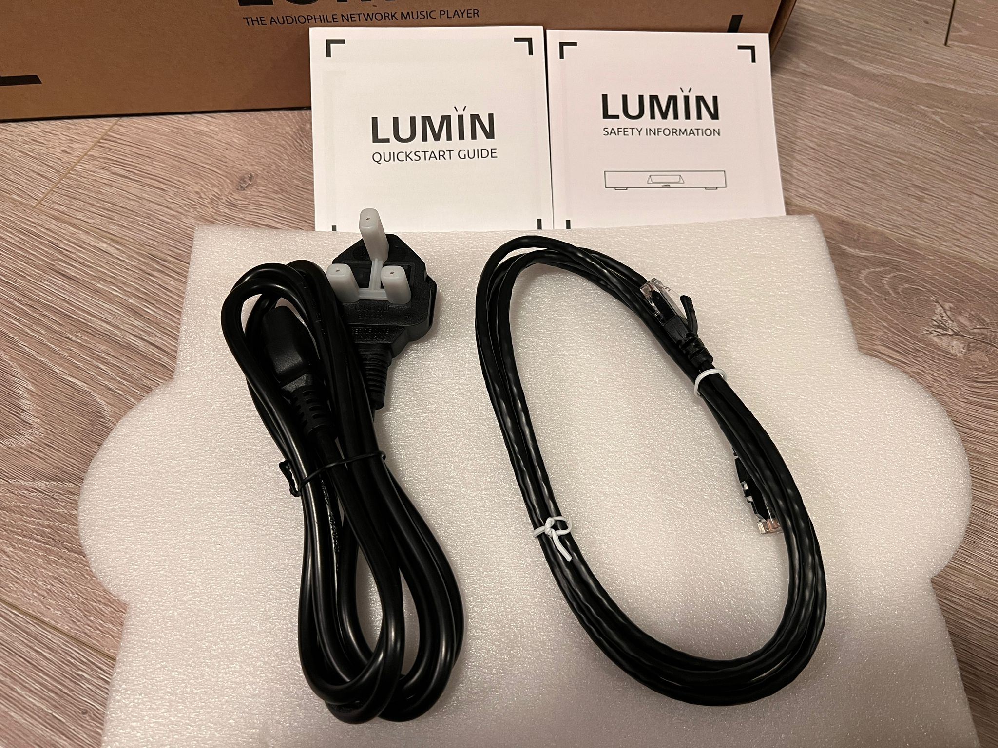 Purchased new from Hong Kong authorised distributor in May 2023. Receipt provided. Come with ethernet cable and UK type power cord but I think you will connect an audio grade power cord.