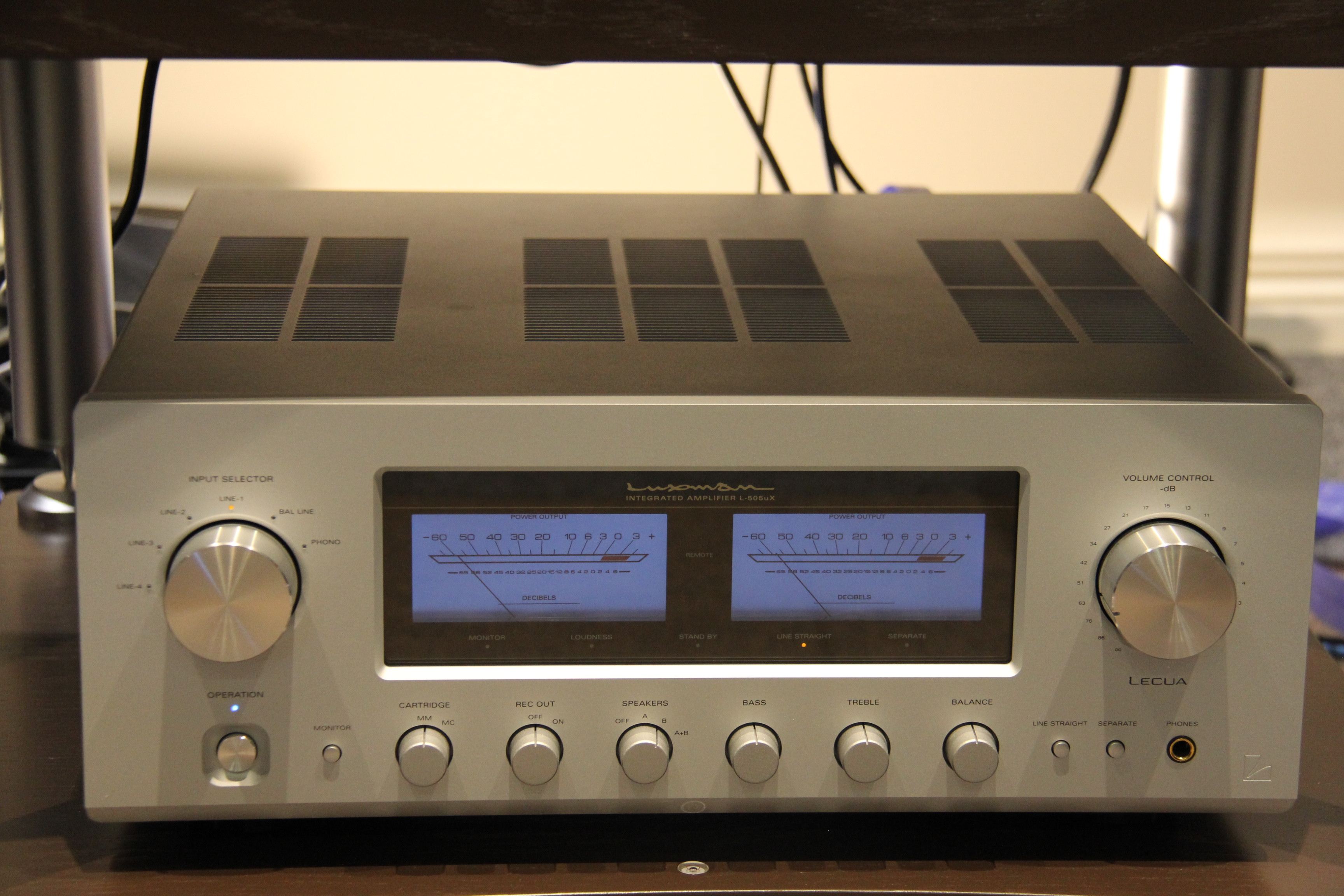 This Luxman L-505UX is a Japanese integrated amp which was released in Japan in 2011 and features the high quality of electrical amplifier circuit engineering that has made Luxman famous among audiophiles. This amp features the technically impressive ODNF 3.0 circuit Critics have remarked on the high quality of the phono stage in this ampl. Overall, and as a result this amp provides exceptionally rich music production. Critics have remarked on the high quality of the phono stage in this ampl. Overall, the L-505UX is a transparent and well-balanced amp, and features a certain quality of construction you can immediately notice, and audio reproduction worthy of the Luxman name.