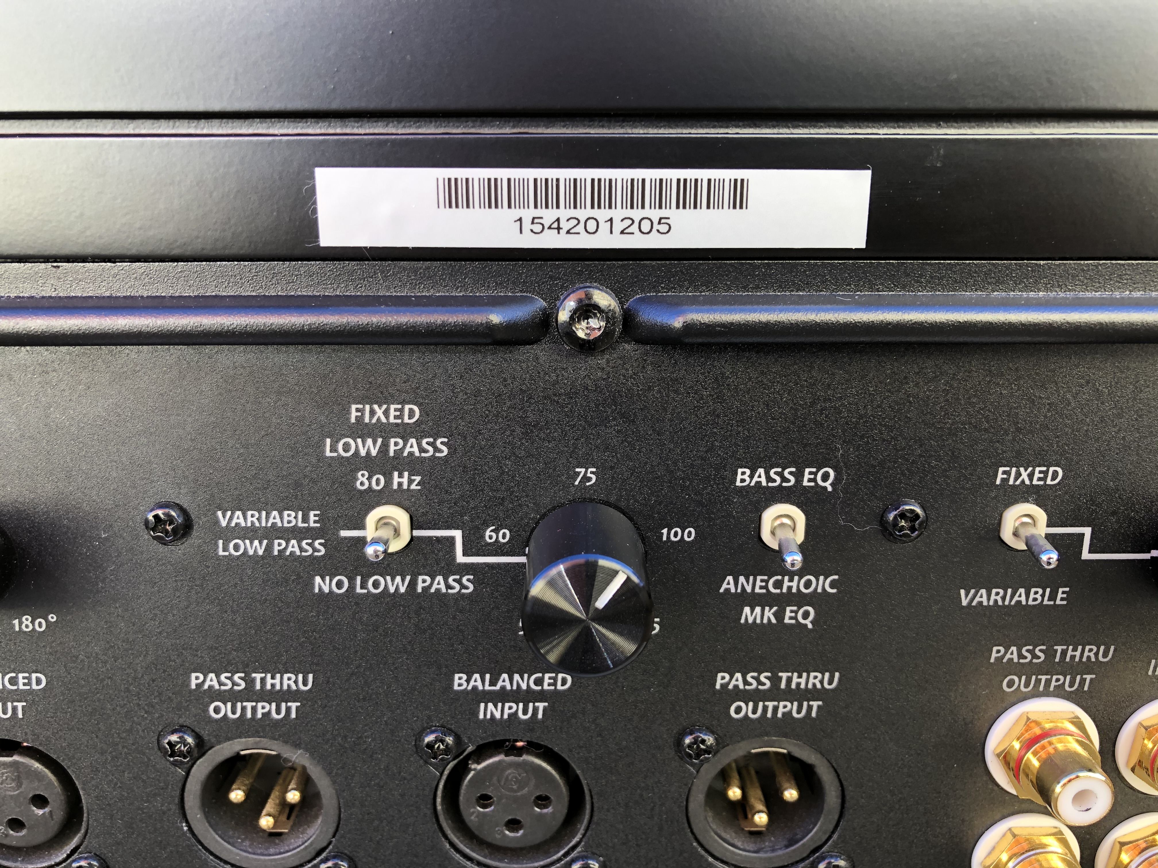 Switchable lowpass filters: Fixed 80 Hz/ Variable/ No lowpass