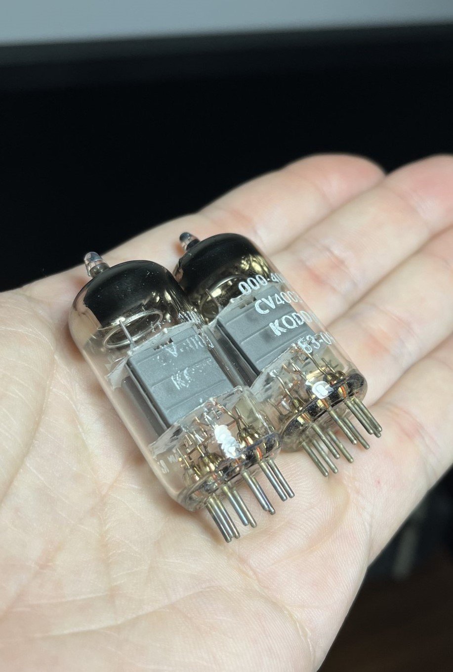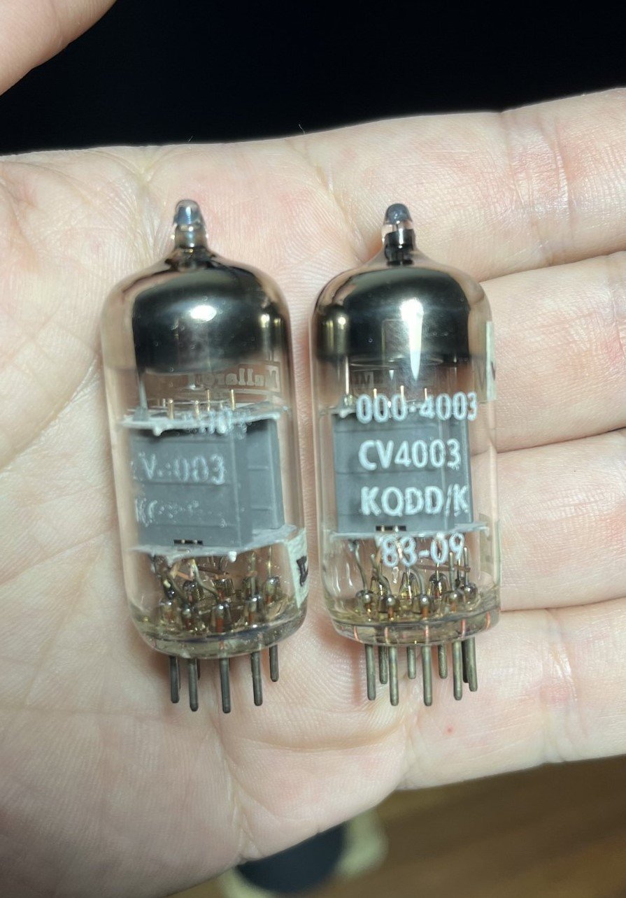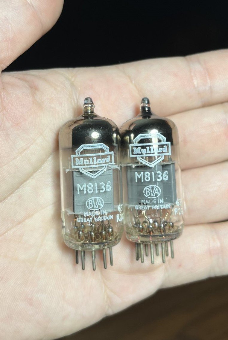 Pair of Mullard M8136/12AU7 with round getters. One measures new and the other is barely used.