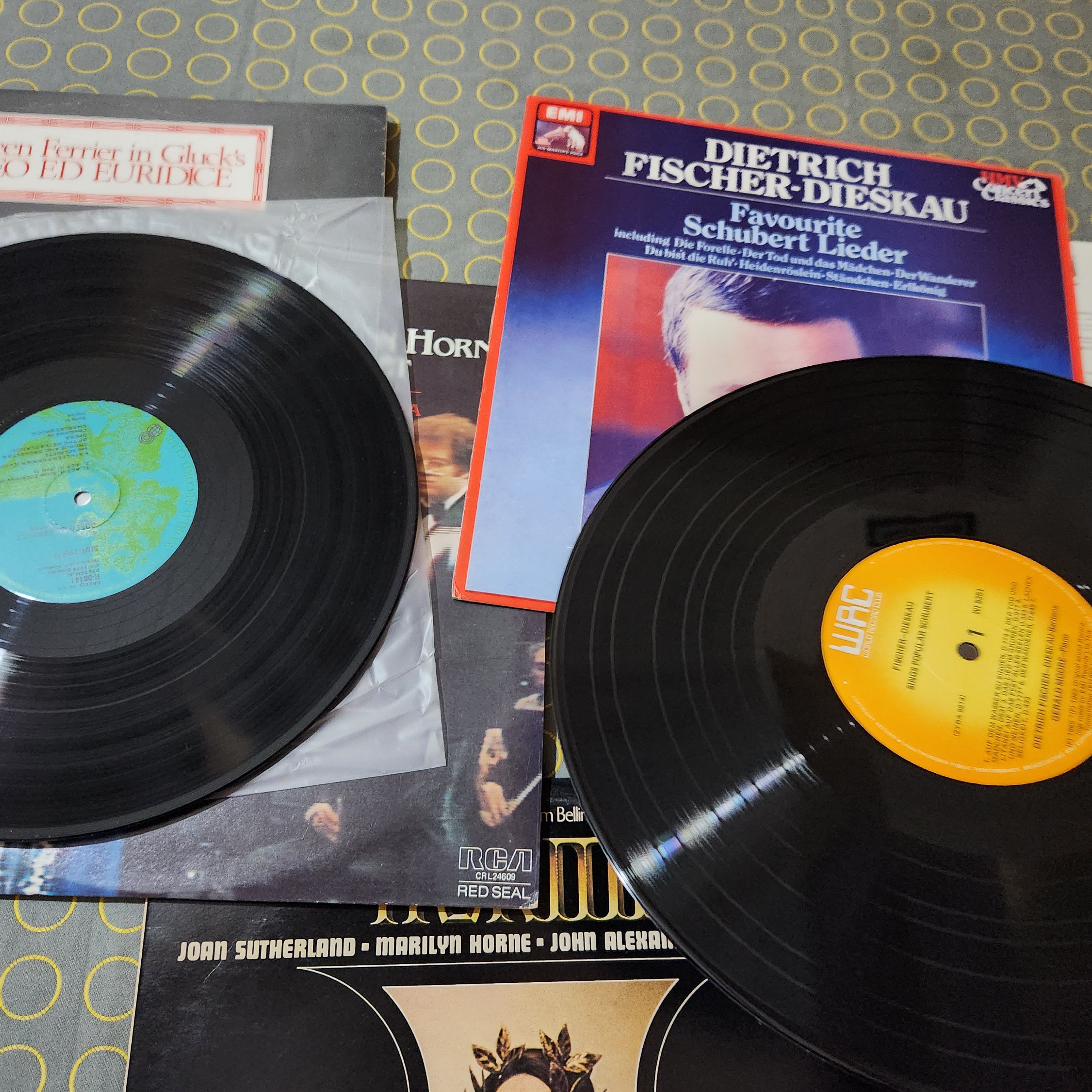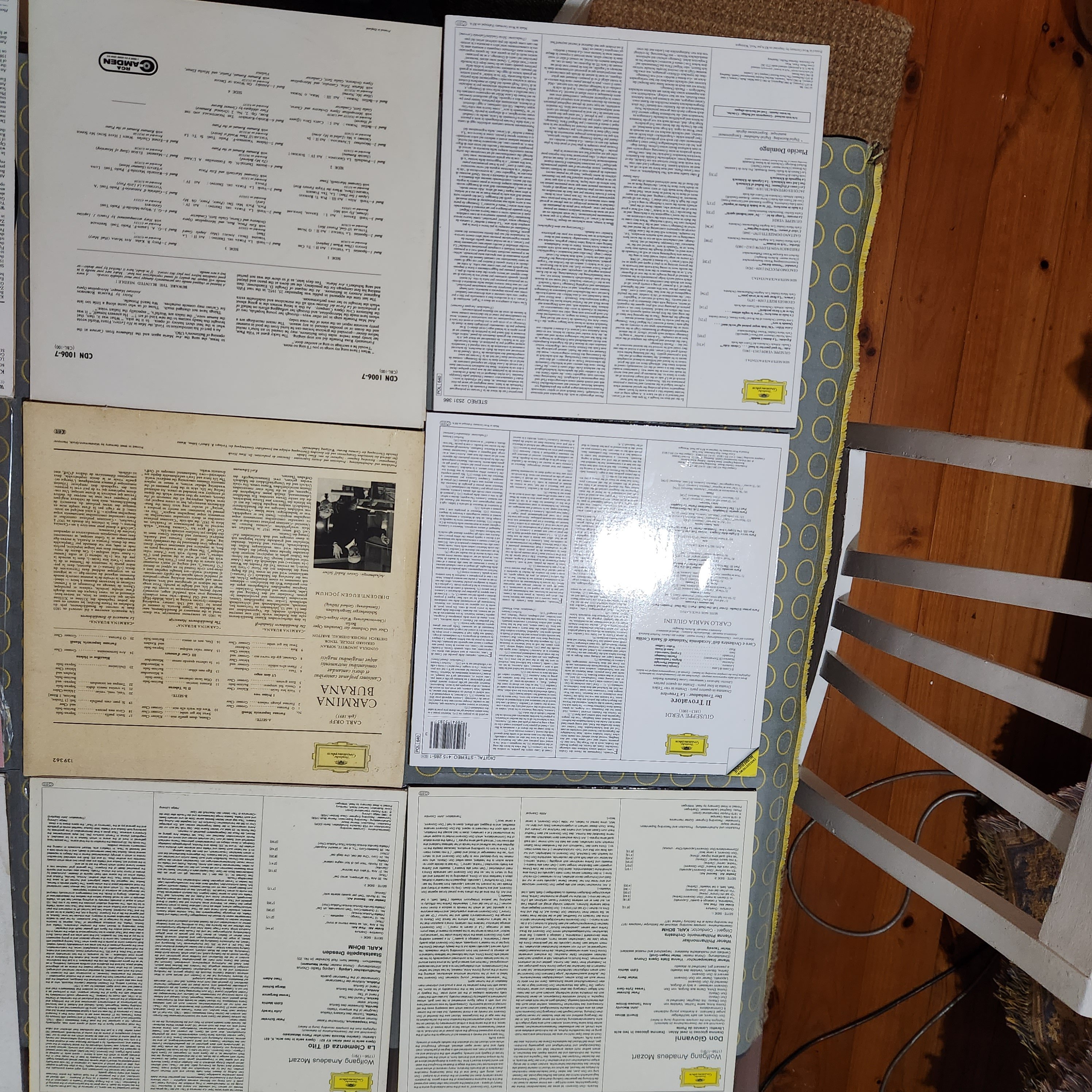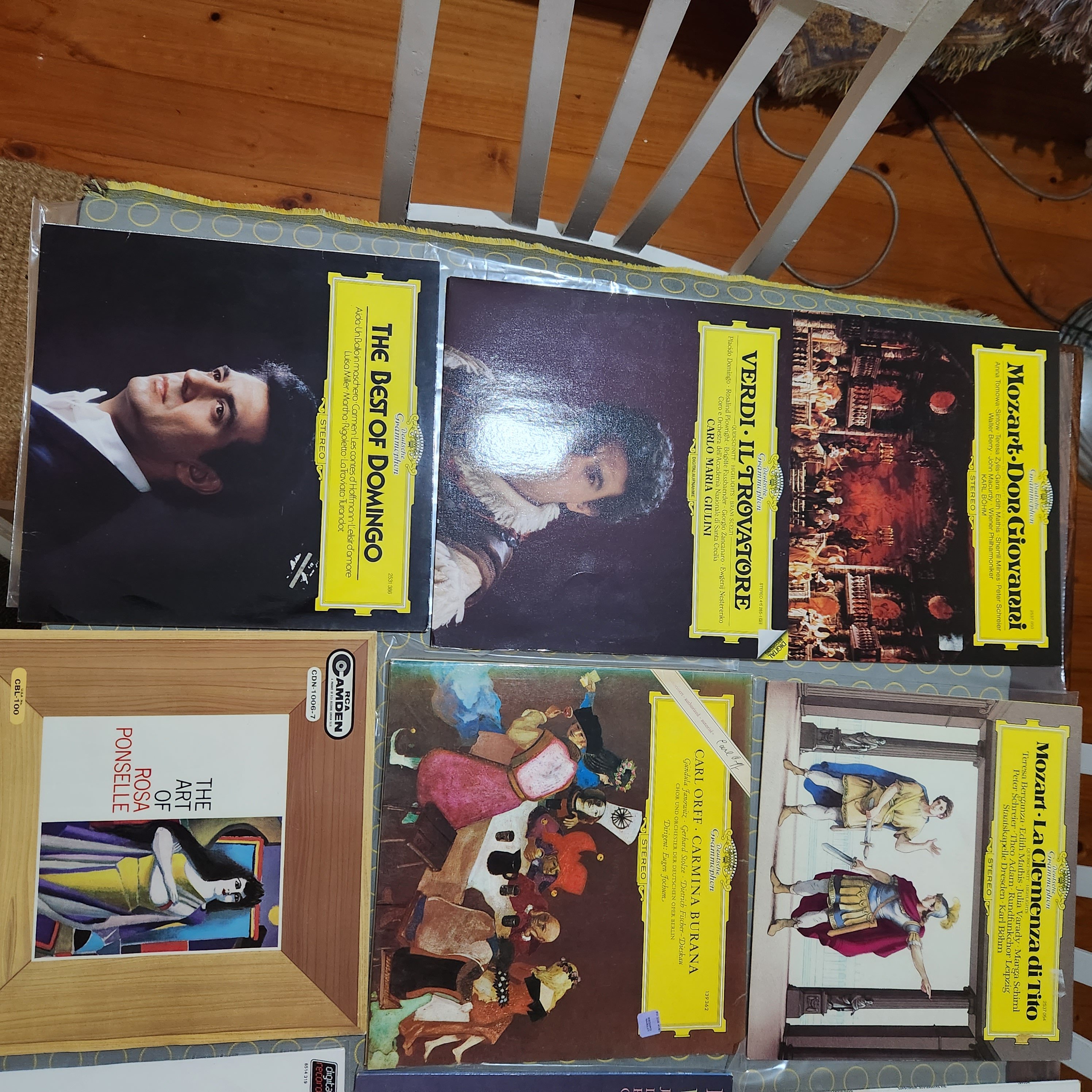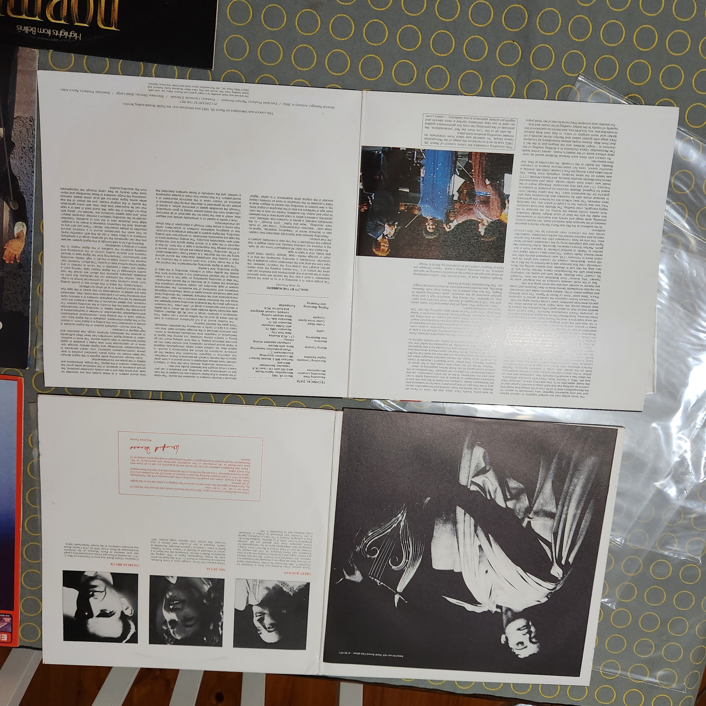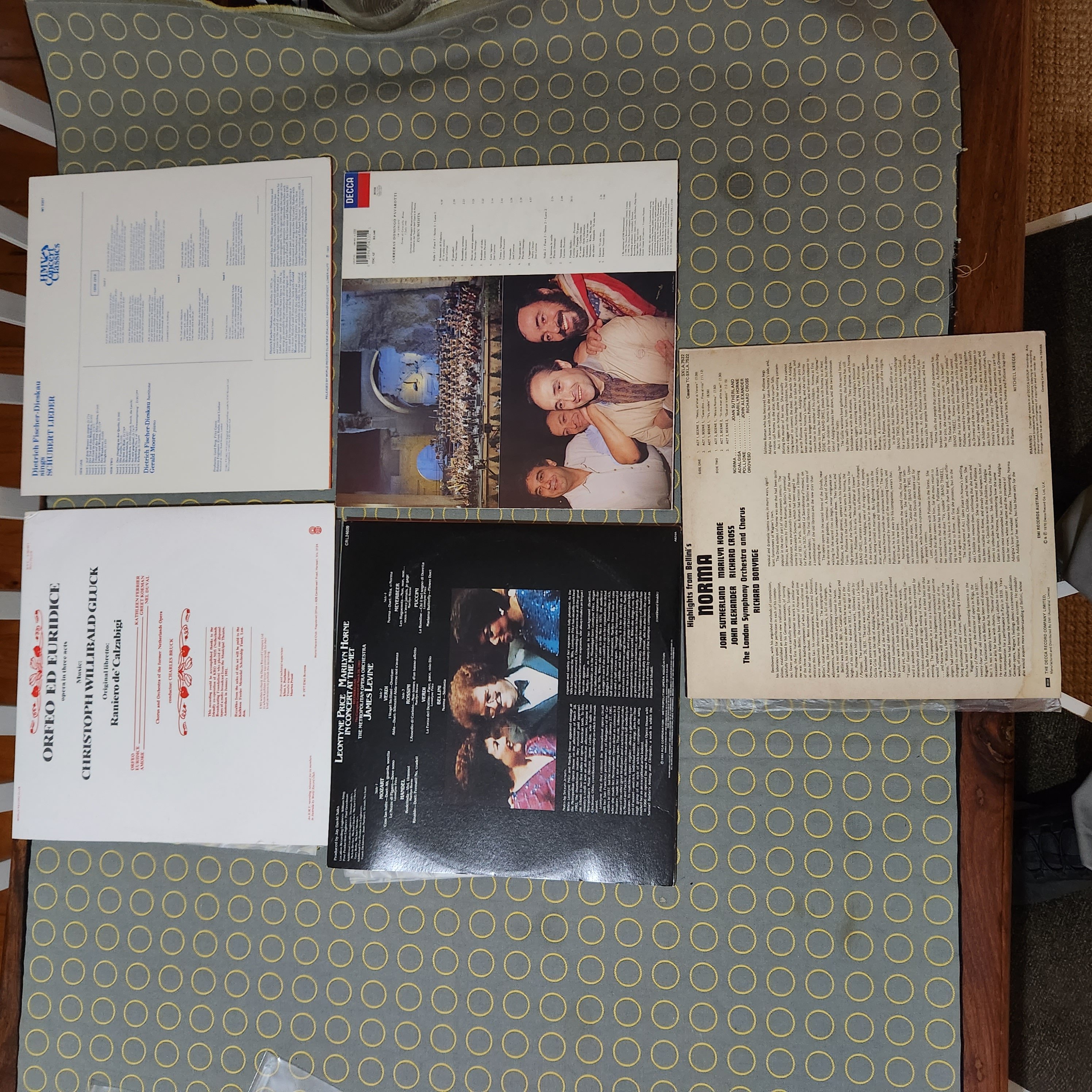 All discs are scuff free, a few faint hairlines on Zauberflöte. side 1 of the Levine, Horne, Price Concert 2 x LP has some minor hazing, DNAP. A few discs have some minor run-in noise, resolves before band 1 starts except Jesse Norman & Klemperer/ Mozart. The DG pressings, e.g., Tito, are at the VG+++ SQ end.