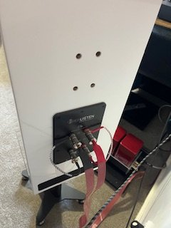 Included in the sale are the speaker stands that are Dynaudio 10s that I had professionally shortened at the top and had 2 plates CNC routed from 10mm aluminium that suit the footprint of the Perlisten's. With the included Gaia 111's, the stands are just below 500mm tall. Also included are the Nordost bi-wire jumpers.
