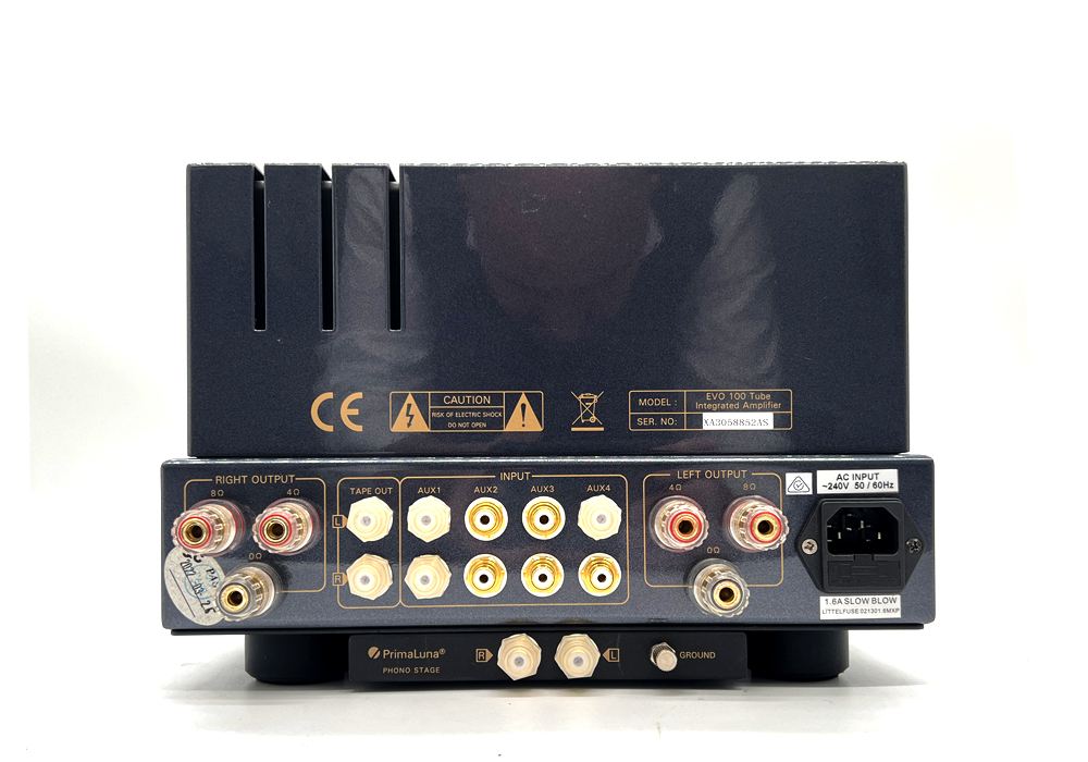 Further Information: Today we have Prima Luna Evo100 Integrated Amplifier in excellent secondhand condition. Retaining the essence of its acclaimed lineage, the Evo 100 boasts revamped transformers and superior internal components. The design is aesthetically improved with rounded faceplate edges and roll-top tube cages.