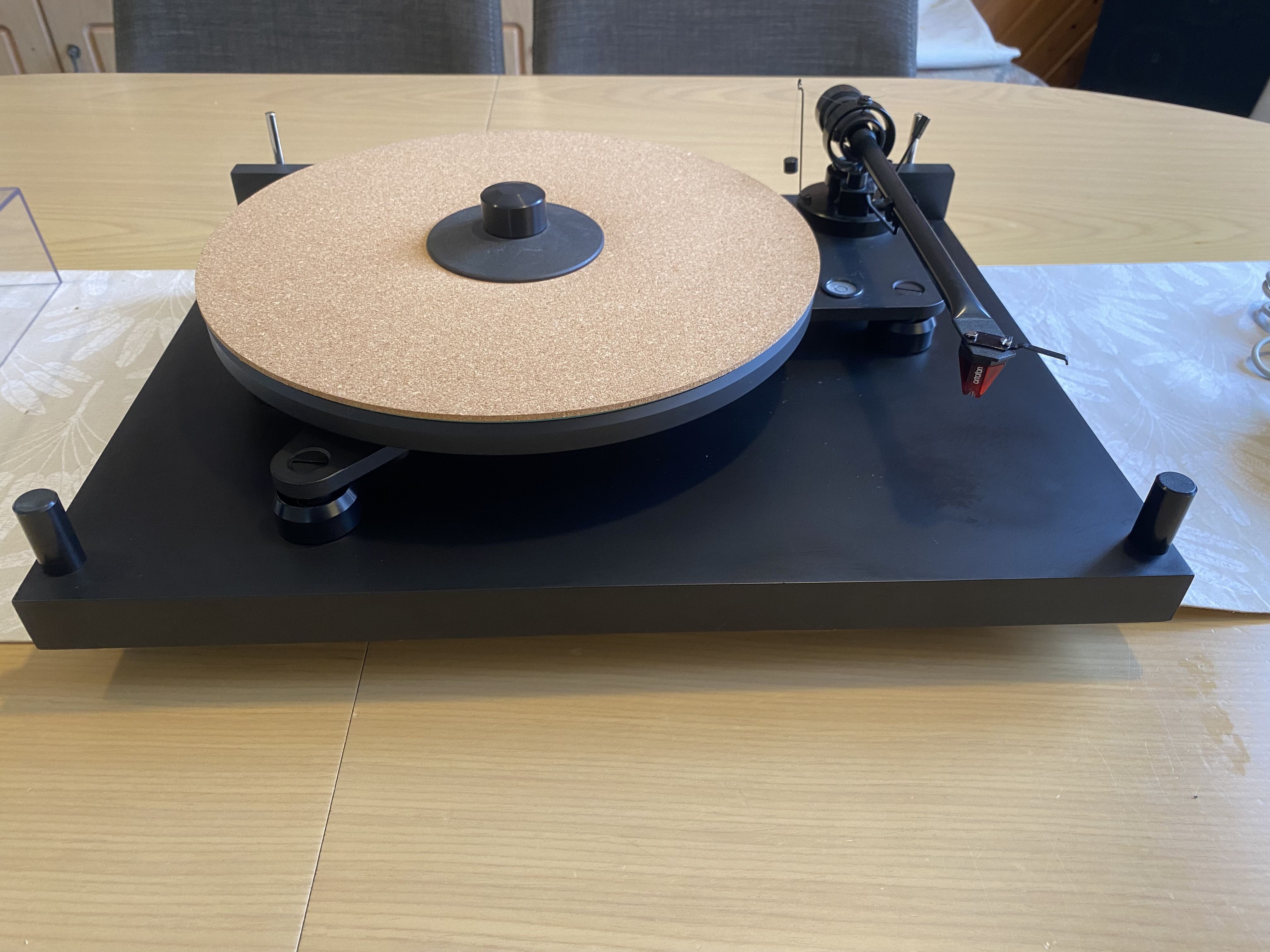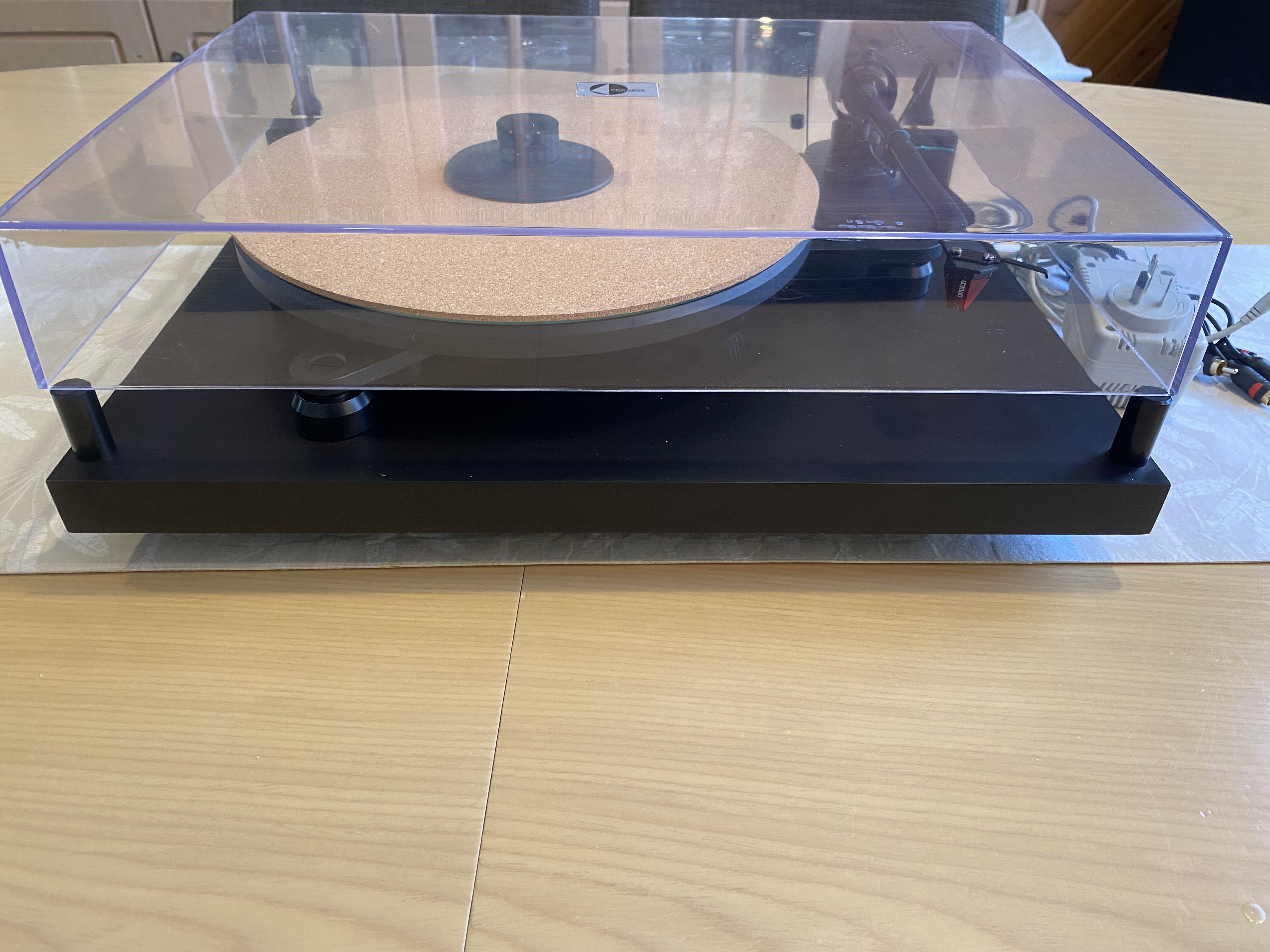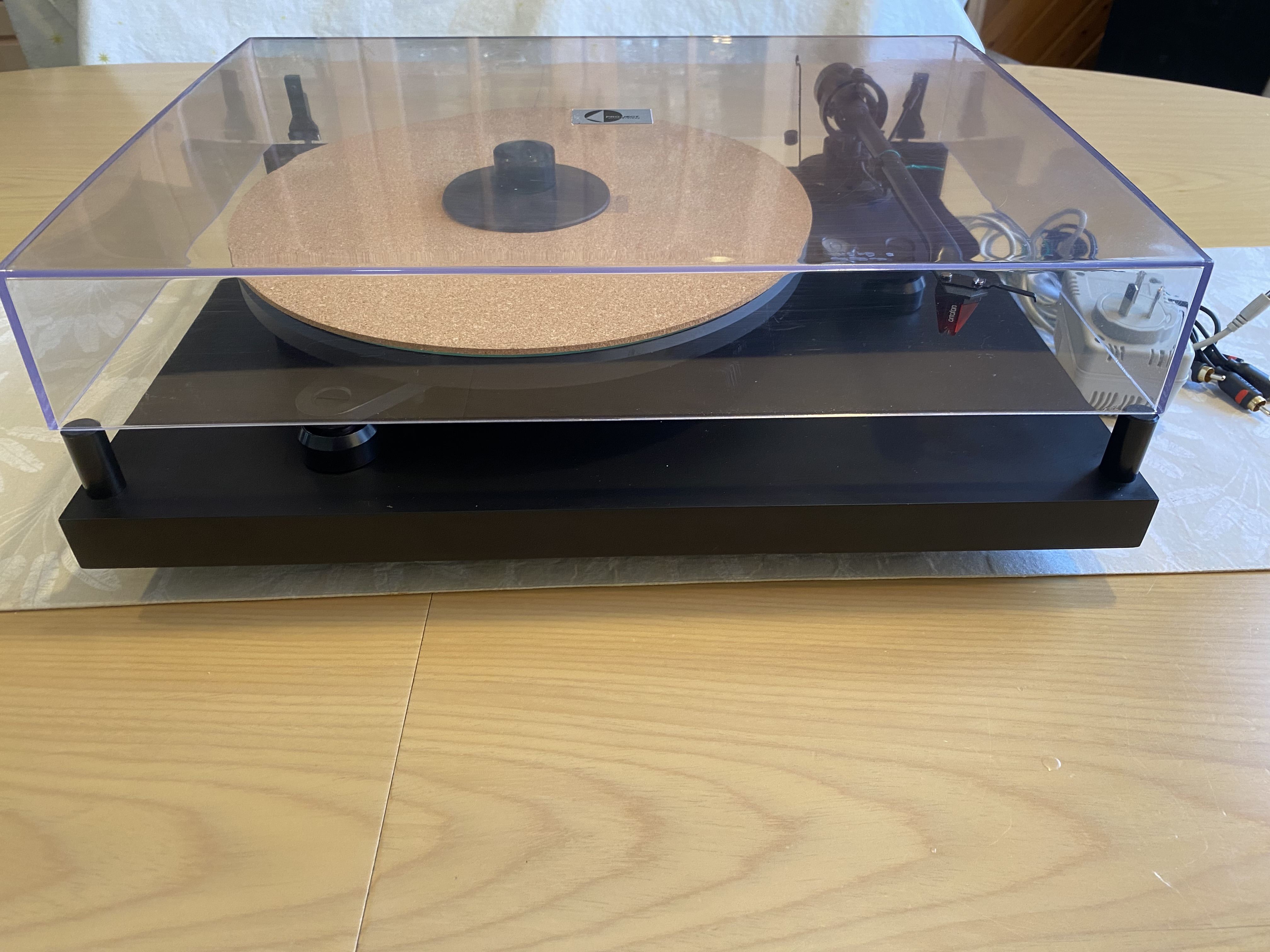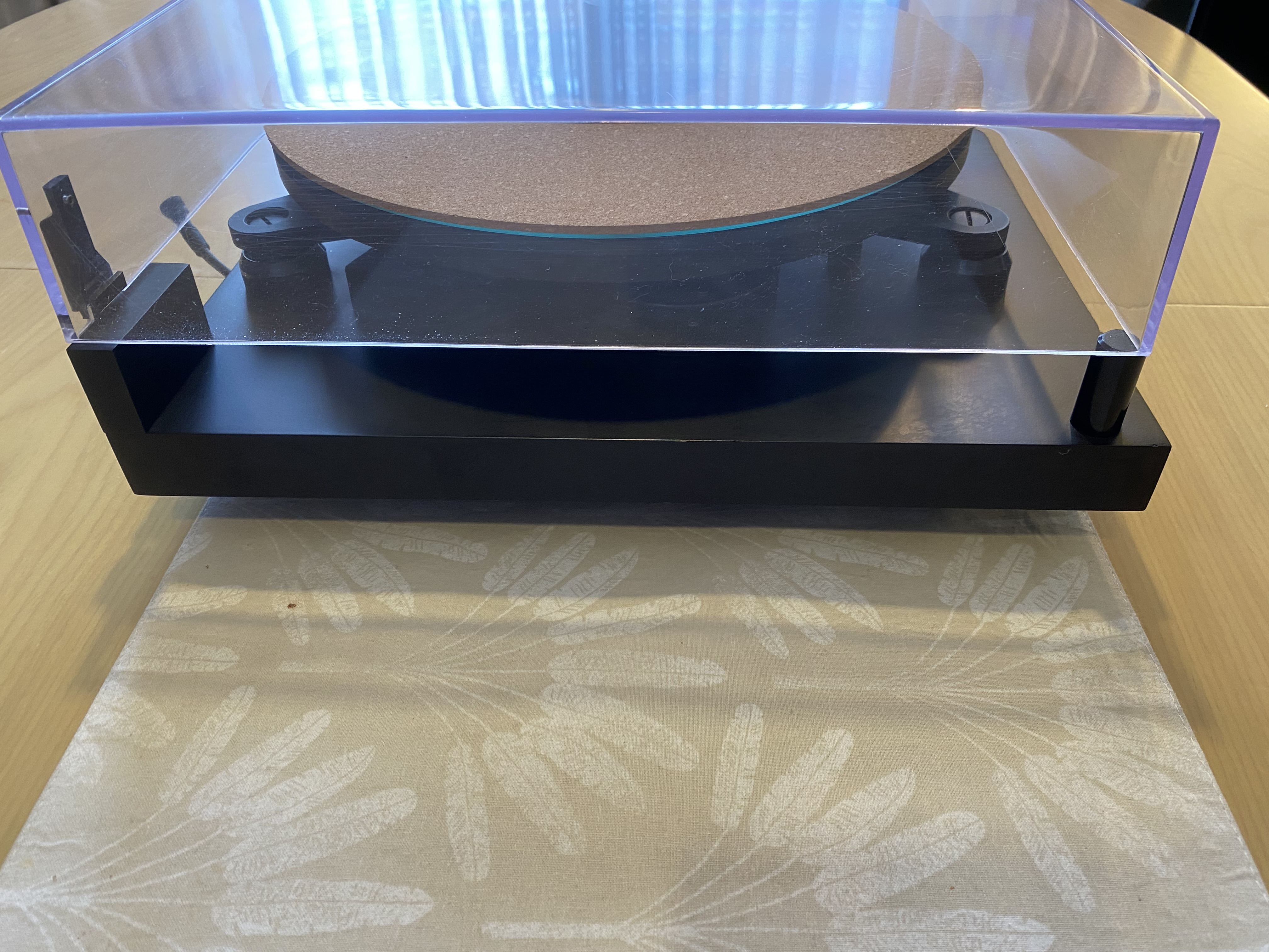 Stunning turntable. Meticulously maintained. Just had a service (old belt which is only 10 months old also included as spare). Ortofon 2M Red only 2 months old. The table is fully suspended and damped, has a very good arm. Adjustable conical feet for leveling the base and seperate adjusters for leveling the plinth. Rivals many high end TT’s.