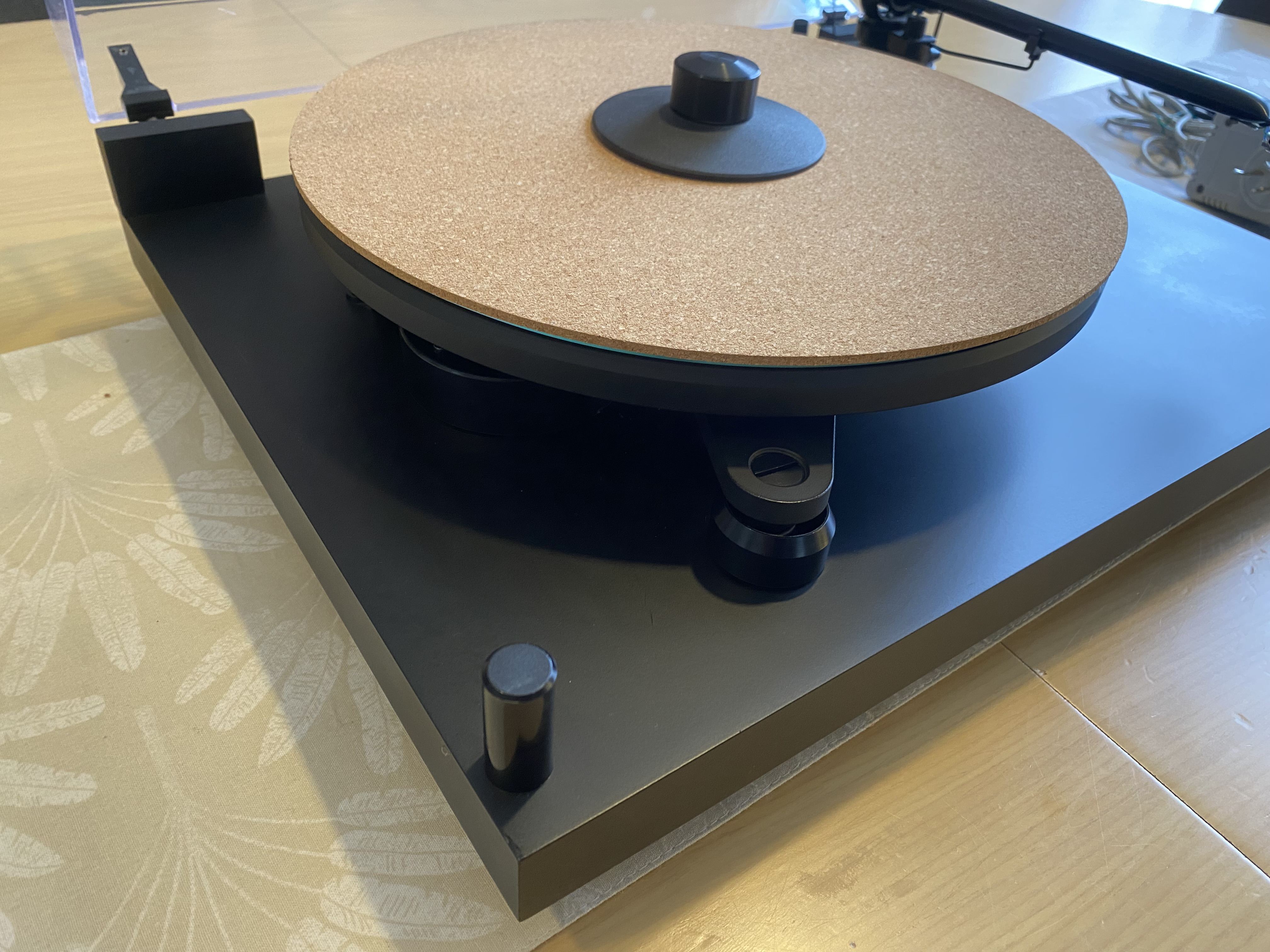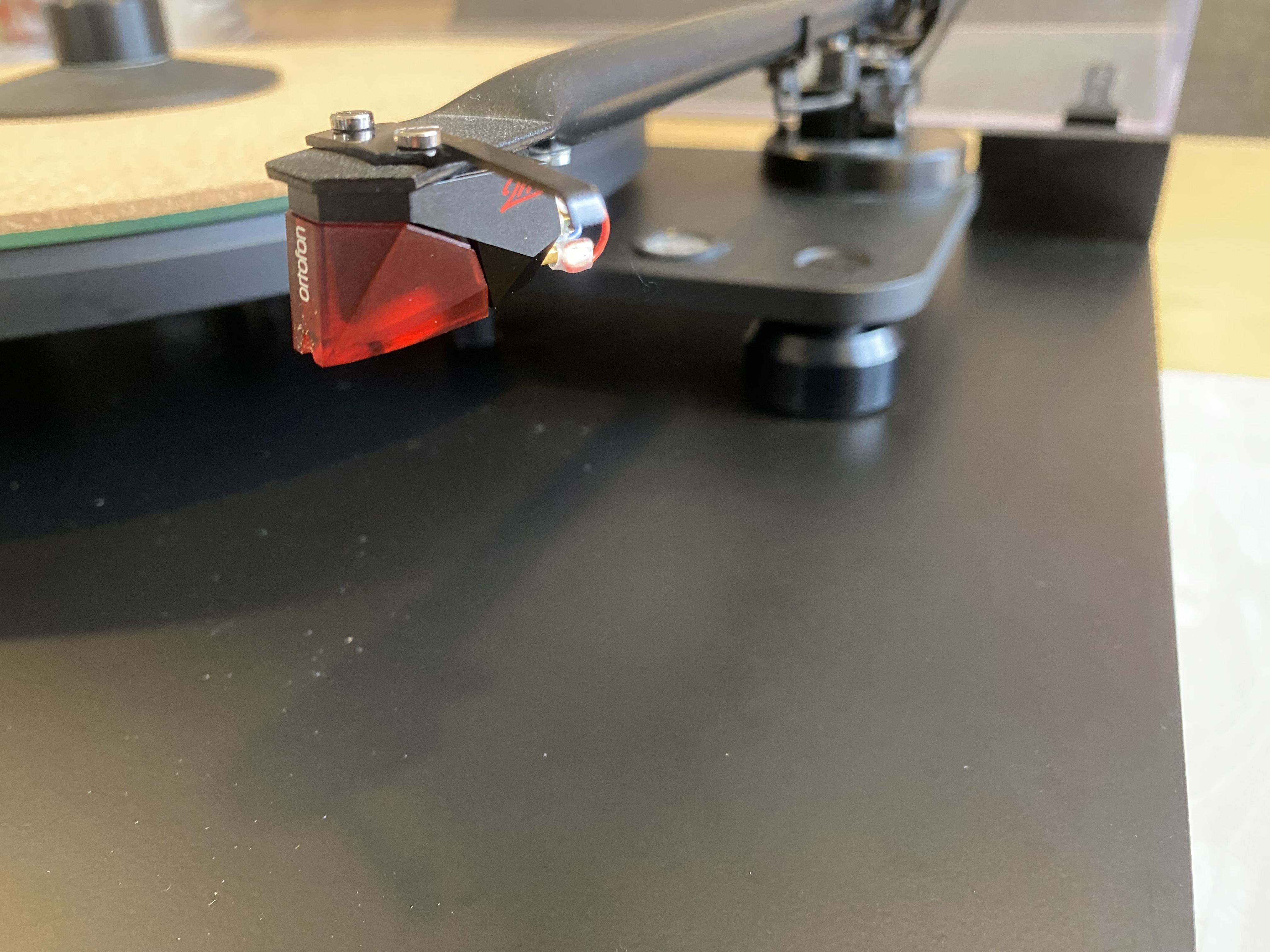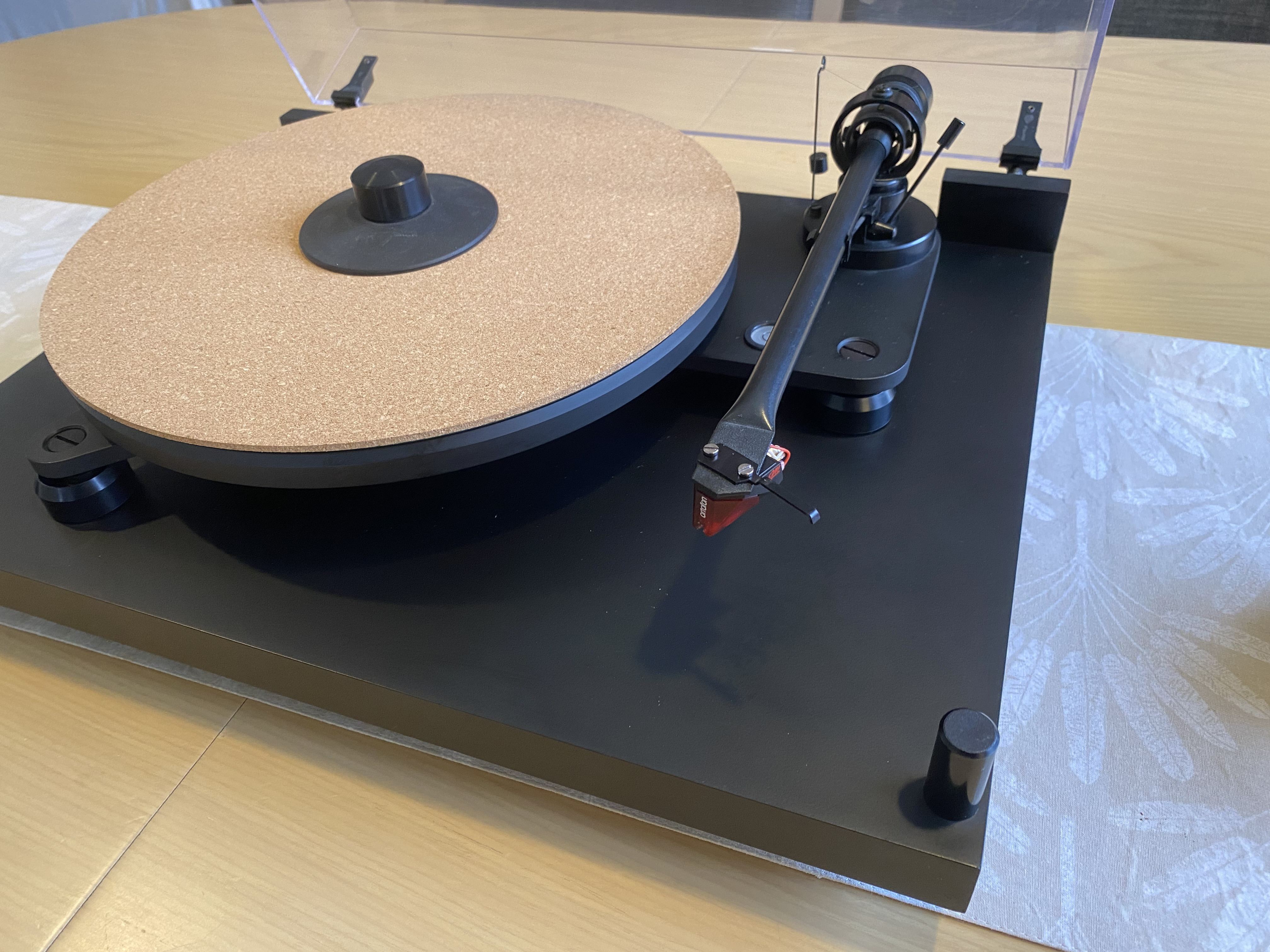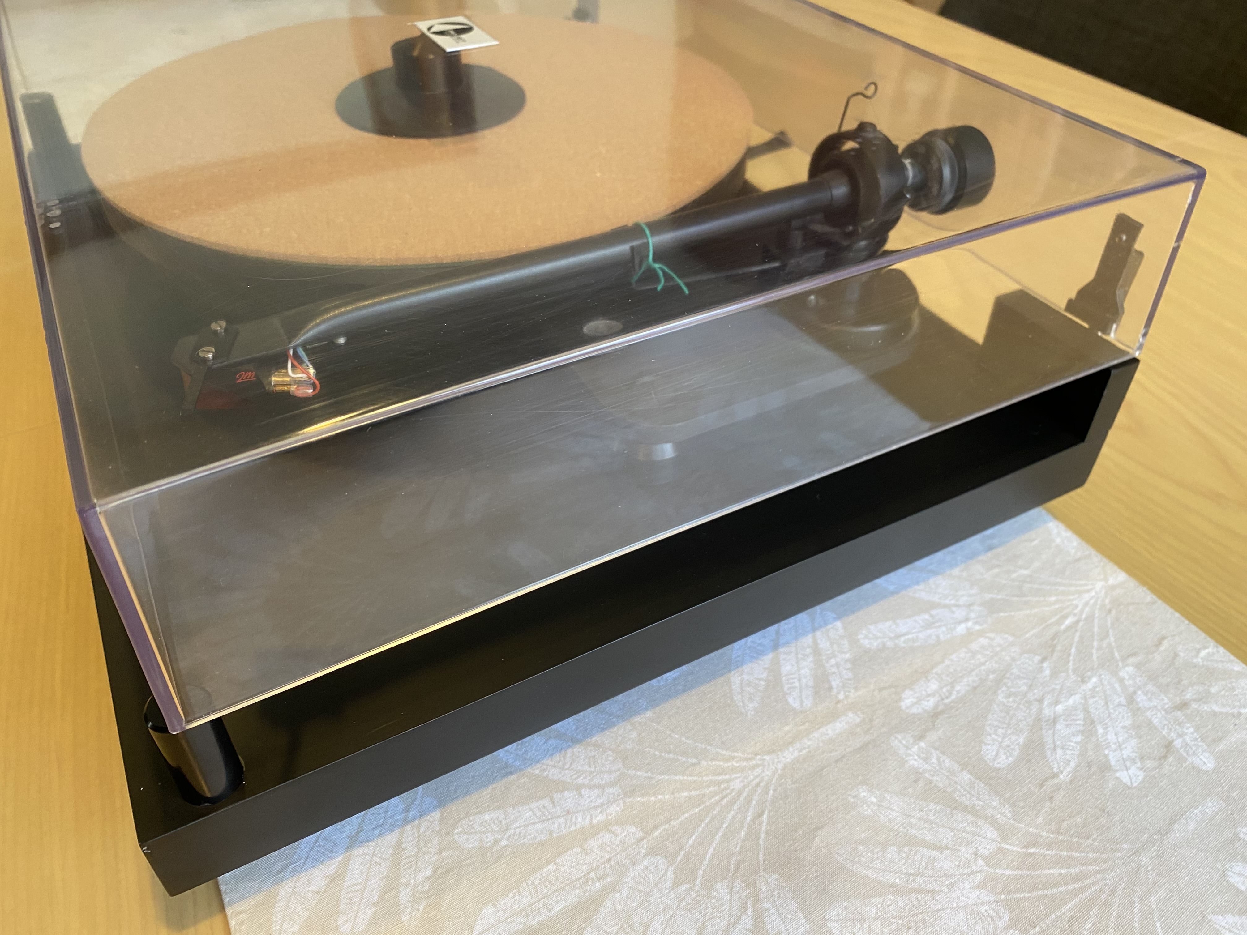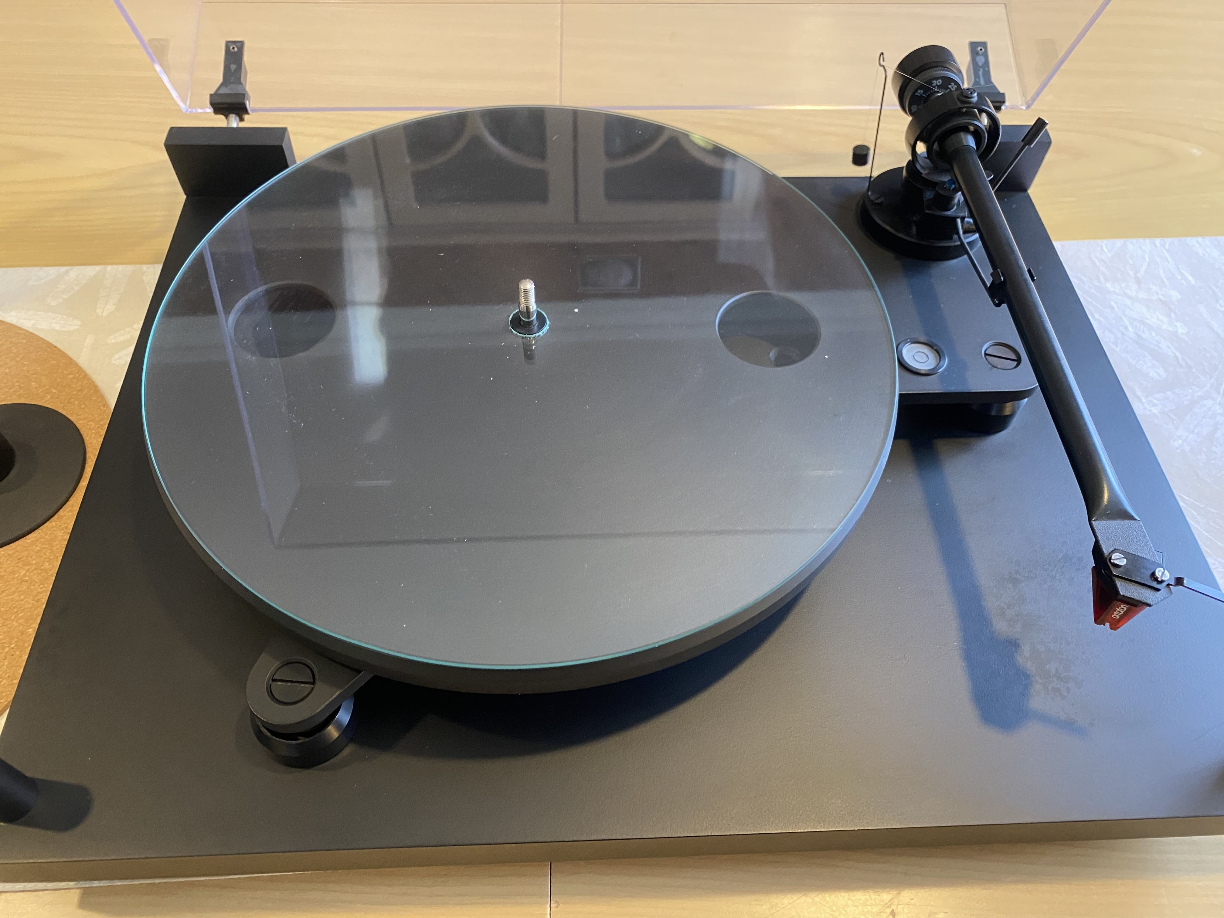 Stunning turntable. Meticulously maintained. Just had a service (old belt which is only 10 months old also included as spare). Ortofon 2M Red only 2 months old. The table is fully suspended and damped, has a very good arm. Adjustable conical feet for leveling the base and seperate adjusters for leveling the plinth. Rivals many high end TT’s.