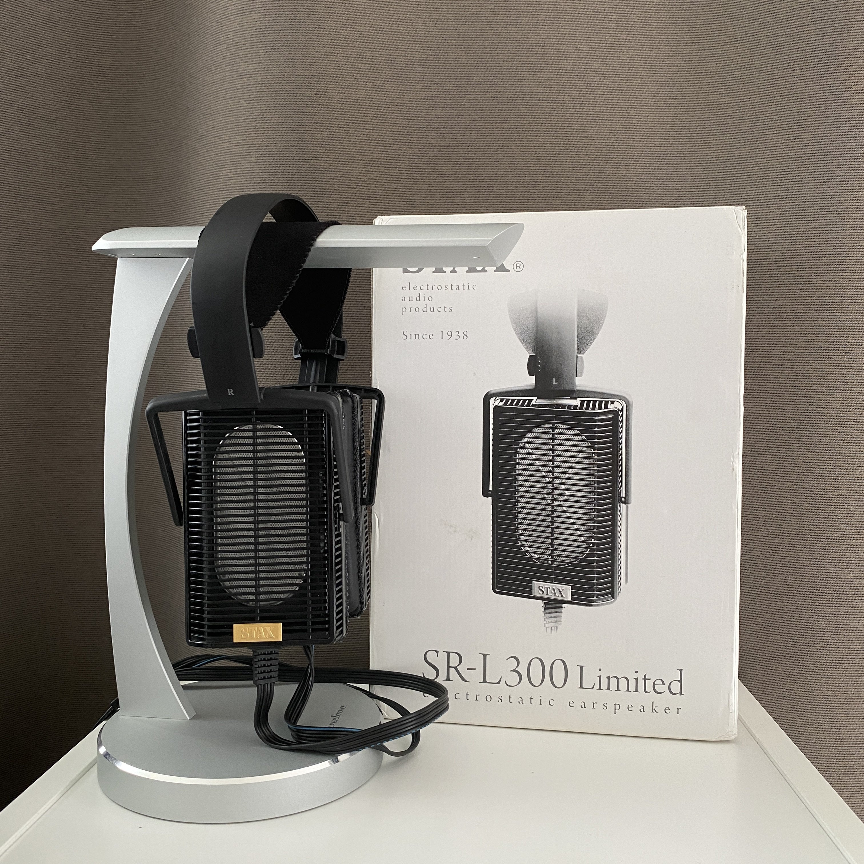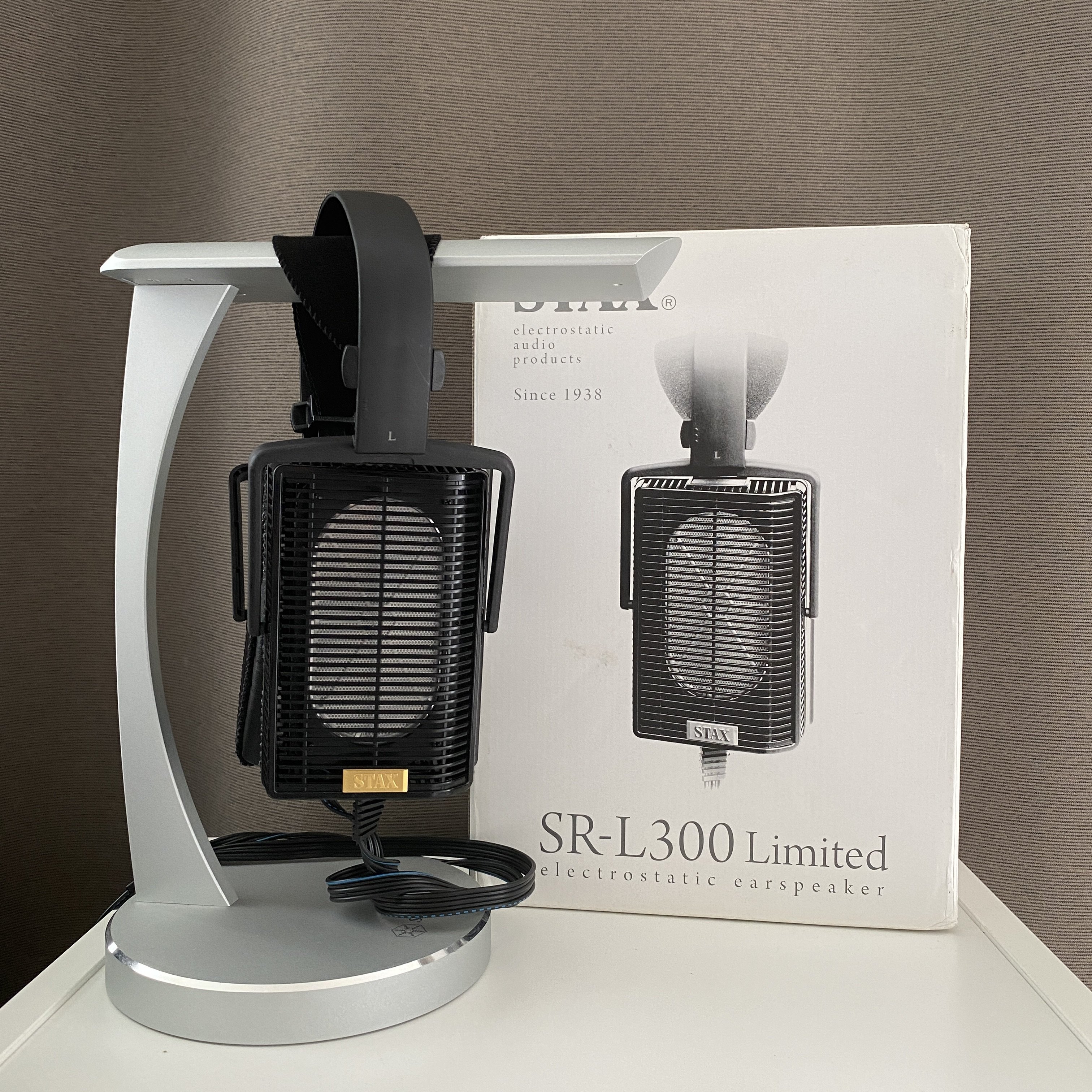 This is the 80th anniversary limited edition of the STAX SR-L300 earspeakers headphones, not the ordinary one. Comes with original box.