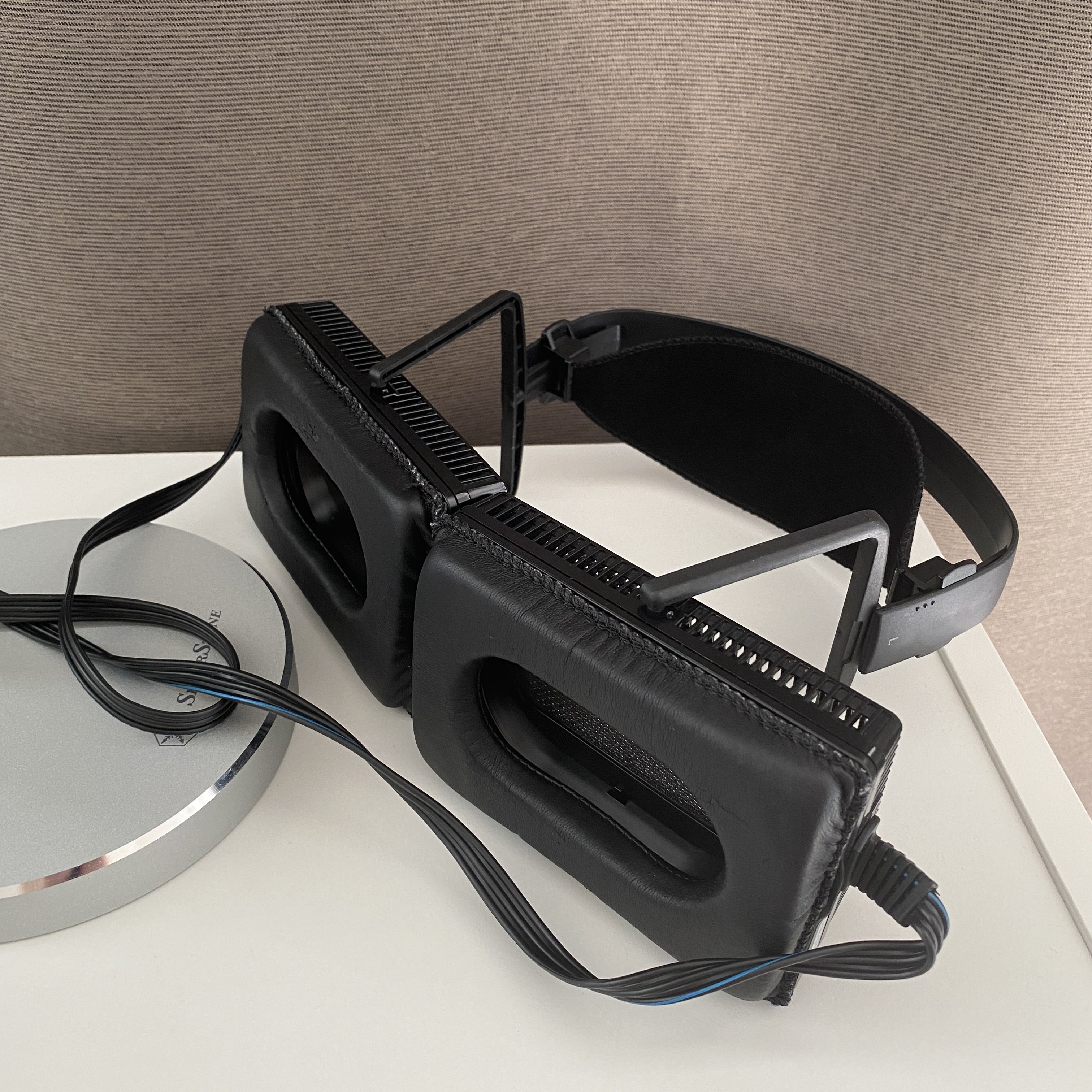 In great used condition. Some signs of use on the plastic headband although it can be potentially cleaned. Not major scratches,dents or marks. Plastic shell in excellent condition. Minor wear on the pads but still in very good shape. Headband strap is clean and firm.