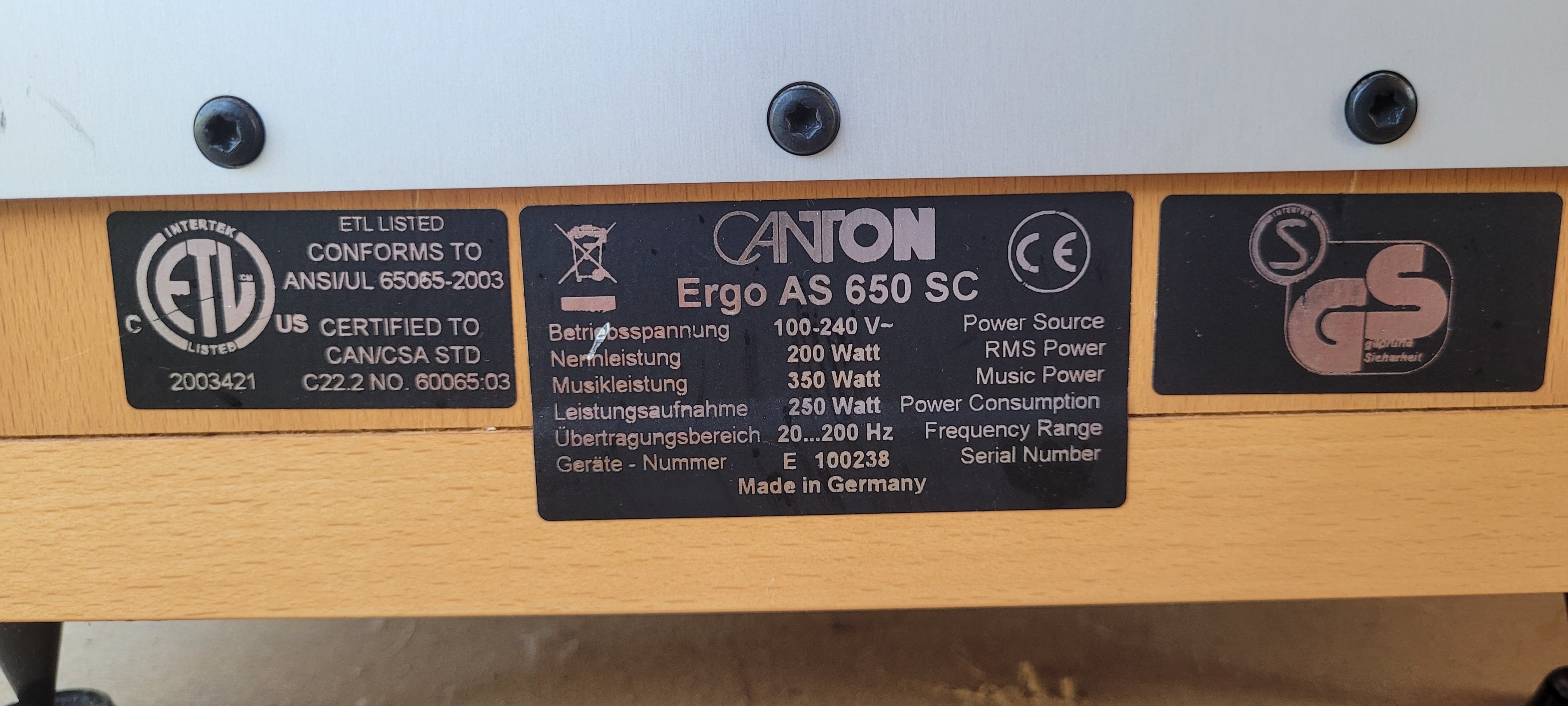Subwoofer Canton AS 650 SC in excellent condition.