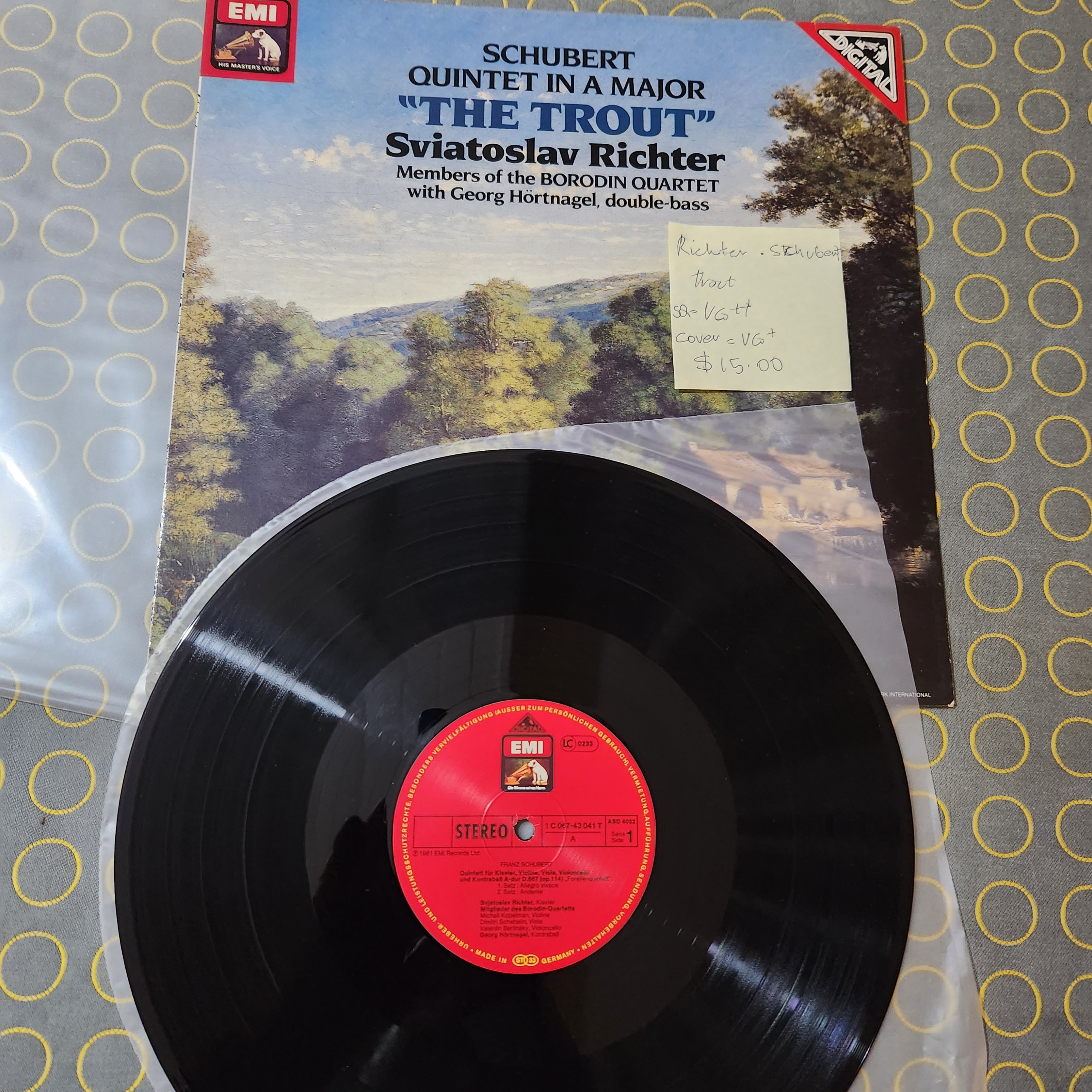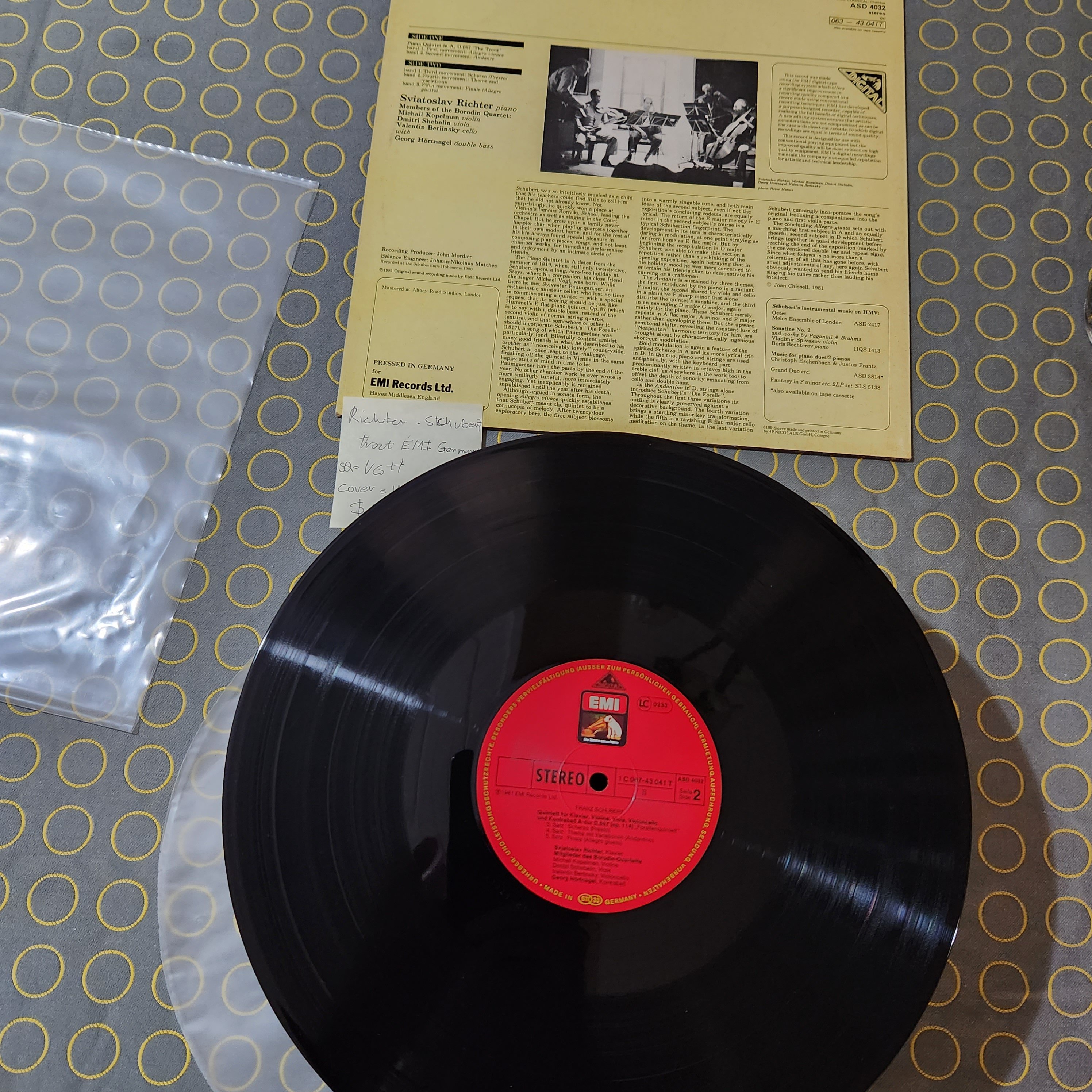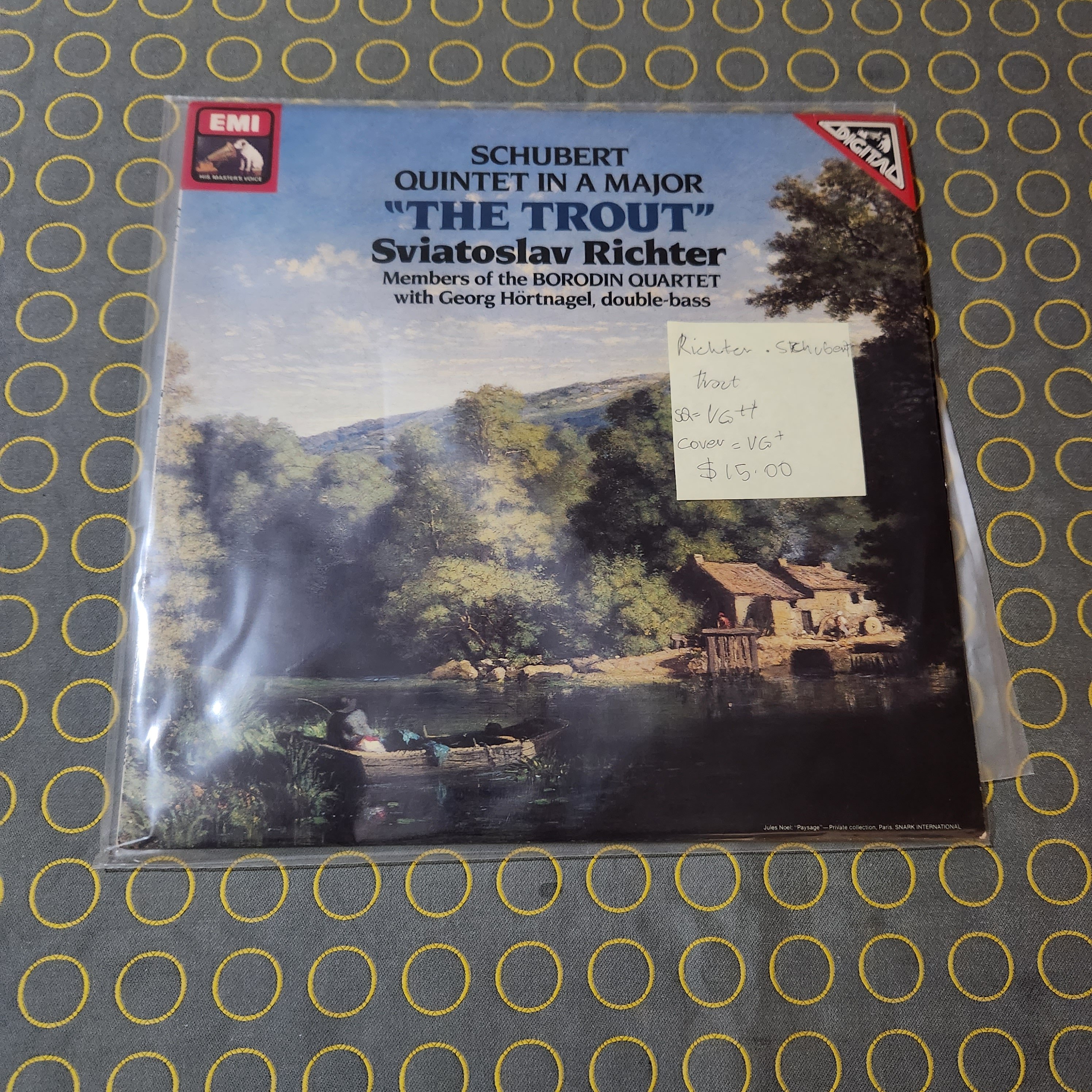 Great clean quiet copy, of Schuberts 'Trout', played by one if the 20th century's greats, with members from the Borodin Quartet for good measure!