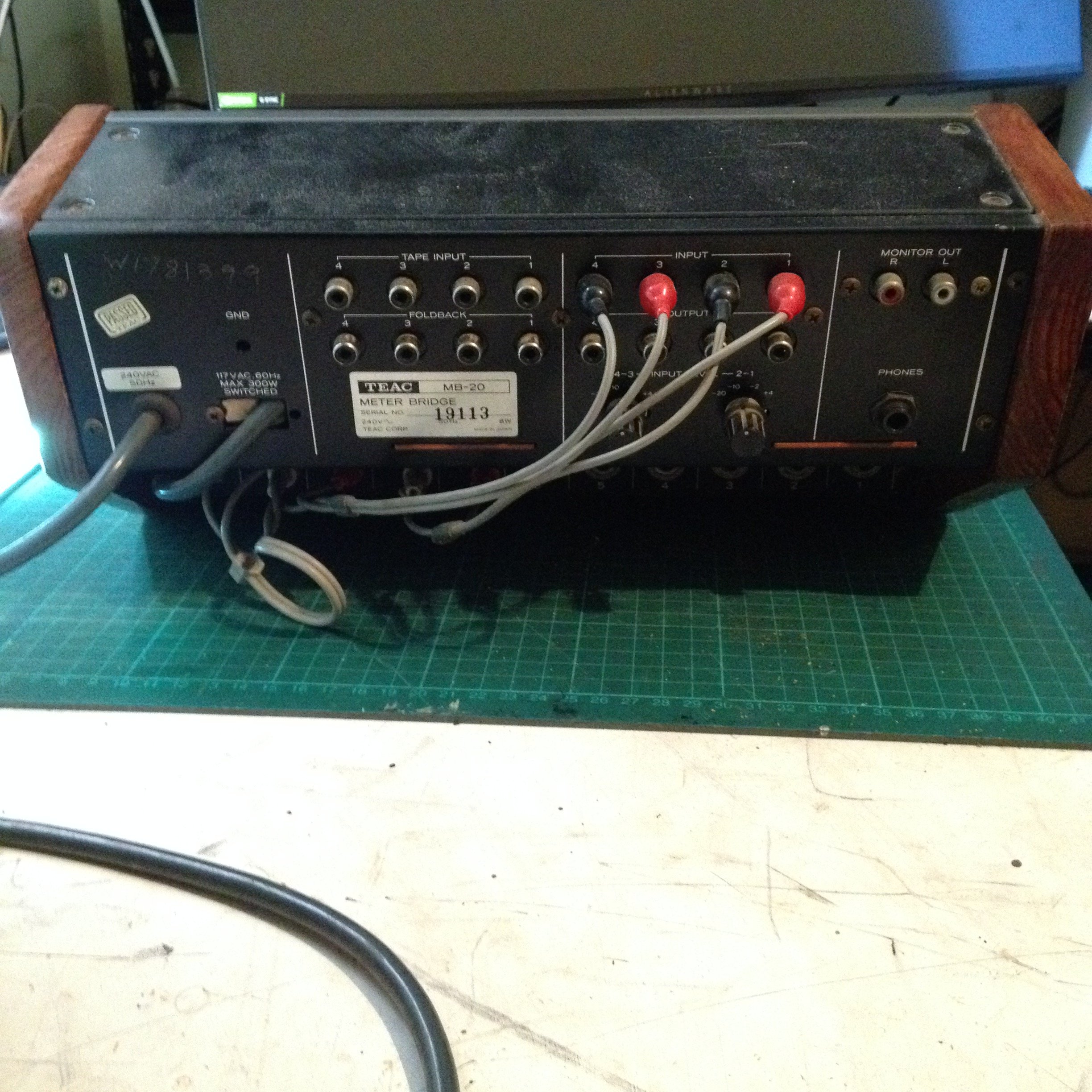 With TEAC 2A 4 channel Mixer with MB20 VU Meter BridgeIt is a 4 meter system with foldback. What this means is you can plug in a set of RCA wires on the way to something else and then a duplicate set of RCA jack are present at each input to allow you to take that same signal on to the other device