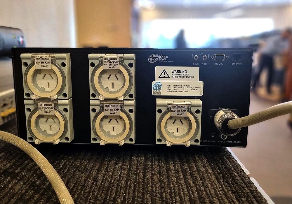 Further Information: Today we have an absolute beast of a power isolation unit from Torus weighing the better part of 50kgs! in excellent secondhand condition with original packaging. Part of Torus Power's MK1 AVR Series, we note that the current Mk2 version retails for some 15K. The CS16AVR 16Amp is spec'd for Australian conditions, making it perfect for the discerning audiophile, home theater enthusiast, or professional who demands the highest performance from their AV system. It offers automatic voltage regulation technology, allowing it to provide a stable power supply regardless of (the frequent) fluctuations in the local grid. This in turn helps to enhance the performance of your audio and video equipment by providing clean, regulated power that can optimize system performance. On board surge protection, helps to protect your valuable AV equipment from potentially damaging power surges and electrical noise. With a significant power handling capacity, the Torus CS16AVR can accommodate a wide range of audio and video equipment. multiple power outlets, providing a one-stop power solution for your entire AV system.