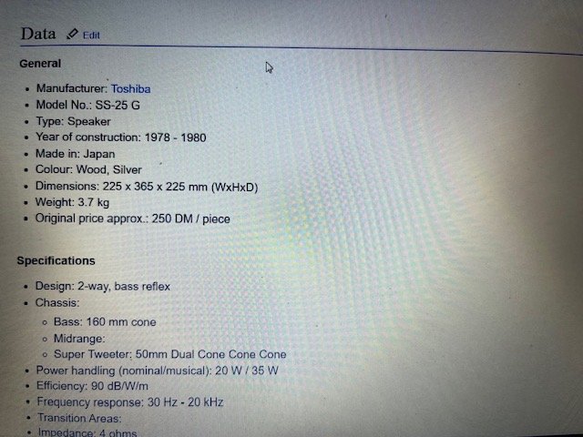 For more info search the web. Toshiba/Aurex SS-25 Specifications Toshiba/Aurex (audio-heritage.jp)
