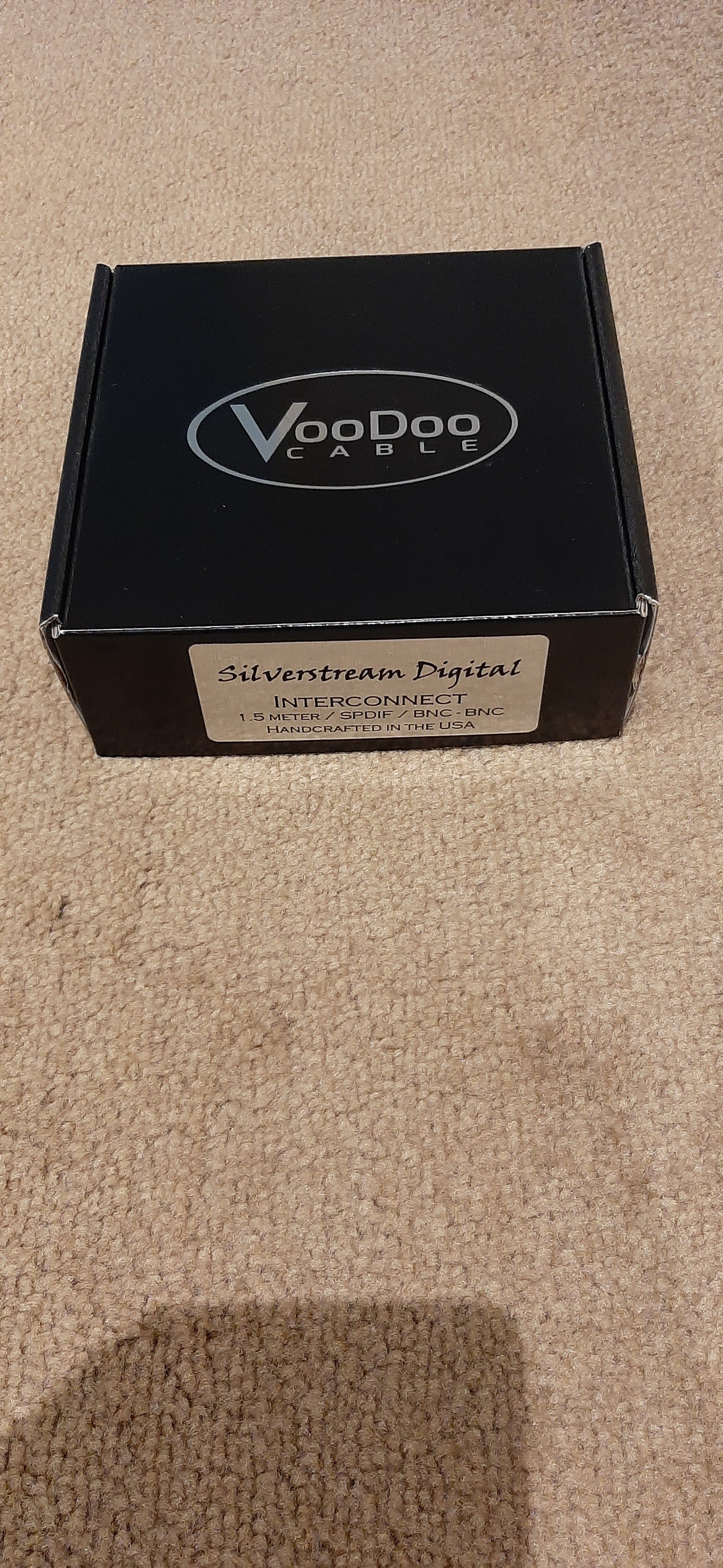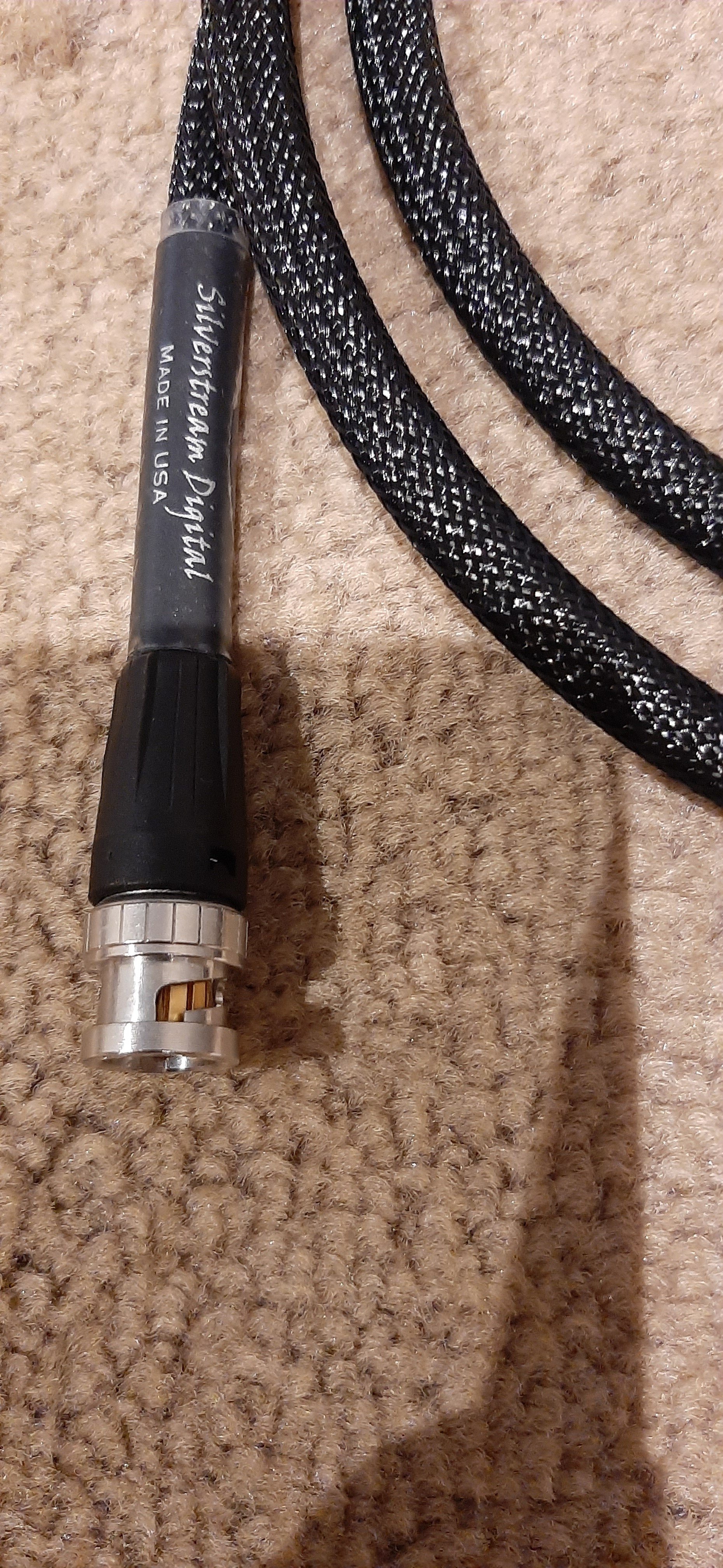 "The Silverstream Digital Interconnect is a true 75-ohm S/PDIF digital interconnect cable with low capacitance’ and constant impedance. The Silverstream Digital provides dramatic reduction in phase-related high-frequency signal anomalies with no jitter in the digital signal transfer. The Silverstream Digital Interconnect is constructed with a cryogenically treated pure solid-core silver conductor in Teflon® dielectric with copper braid shield for 100% protection from RFI and EMI signal corruption. Available with cryogenically treated Neutrik BNC connectors".
