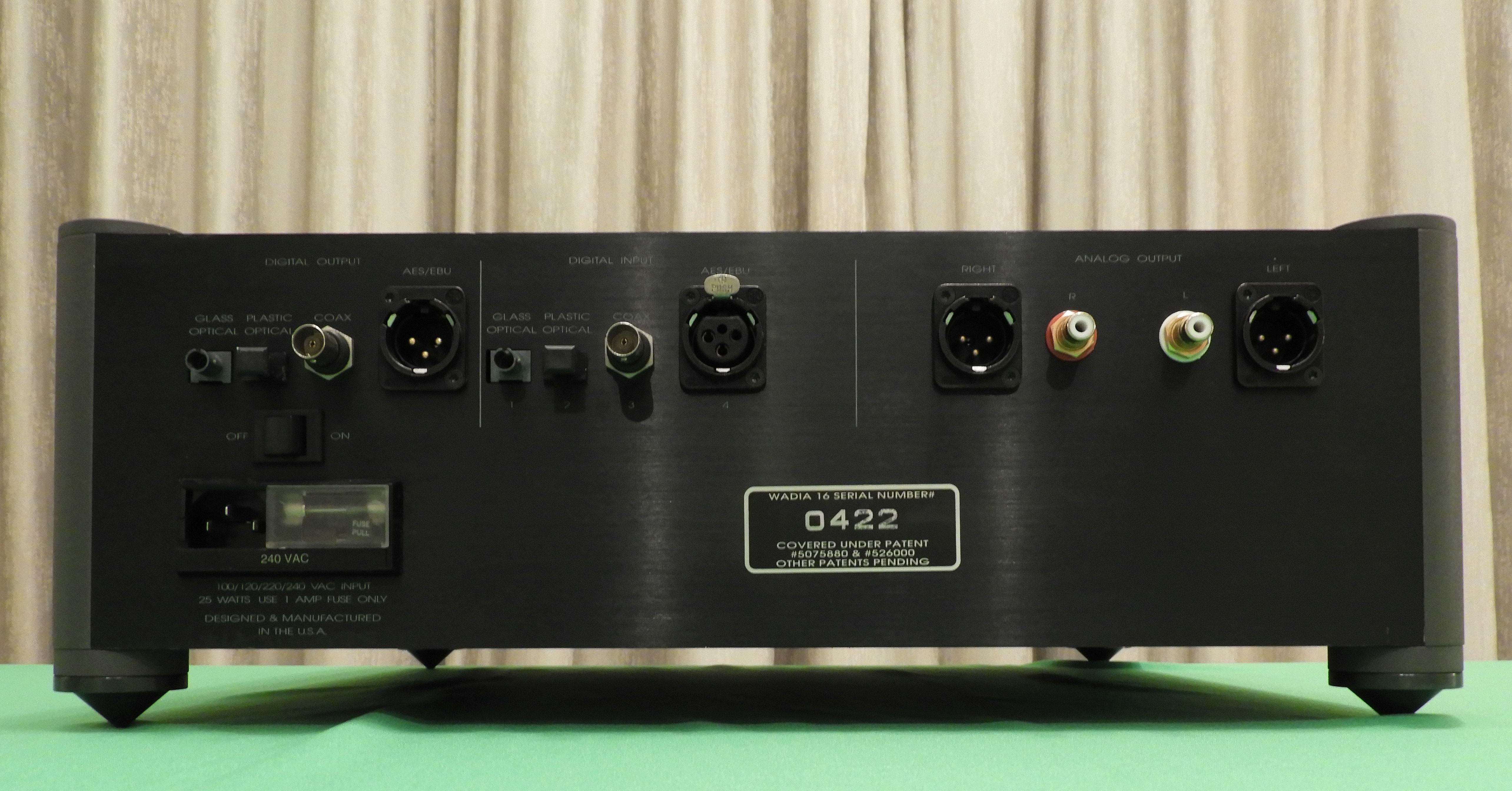 - 4 digital inputs (yes, you can feed your other sources to this extraordinary DAC). The choice, as with outputs are: SPDIF coaxial (on BNC), balanced AES/EBU (on XLR), plastic optical Toslink and AT&T glass optical.