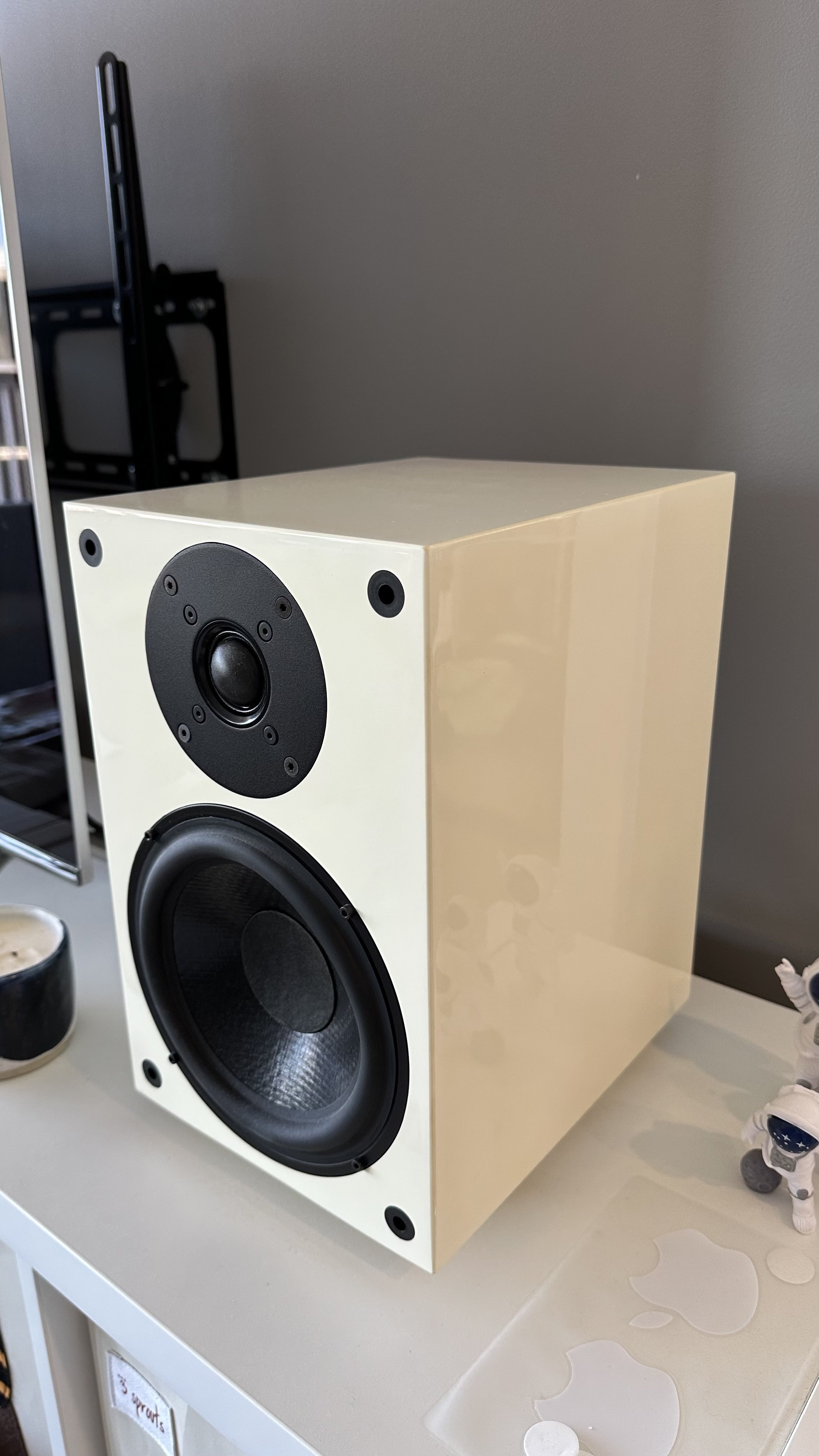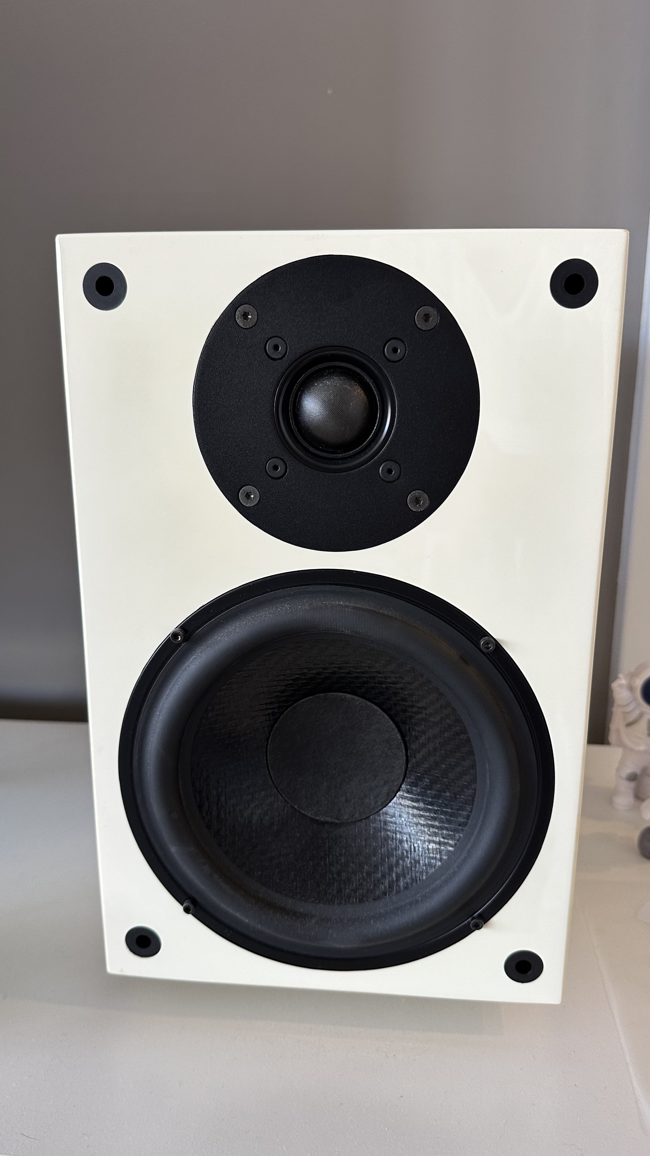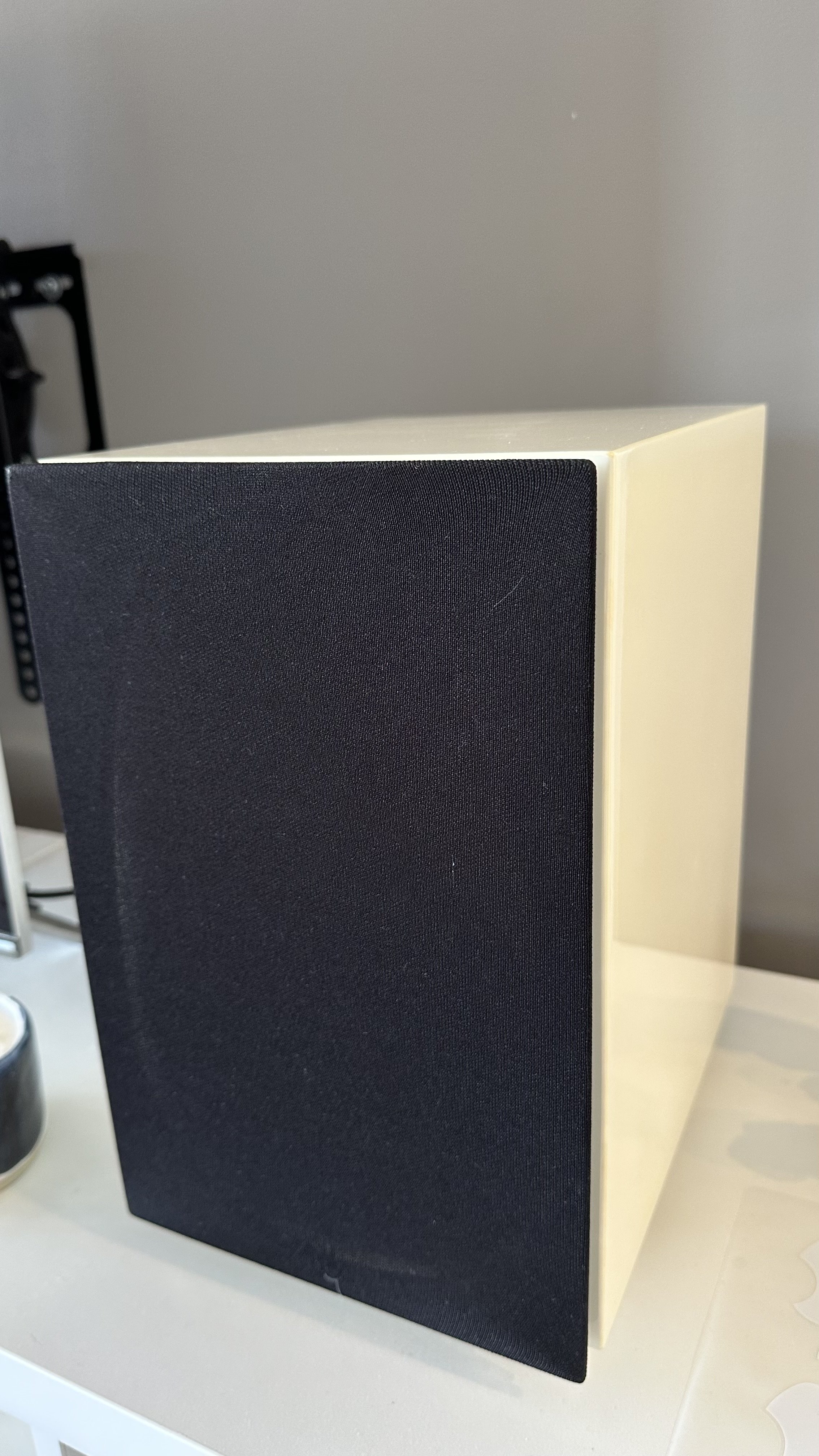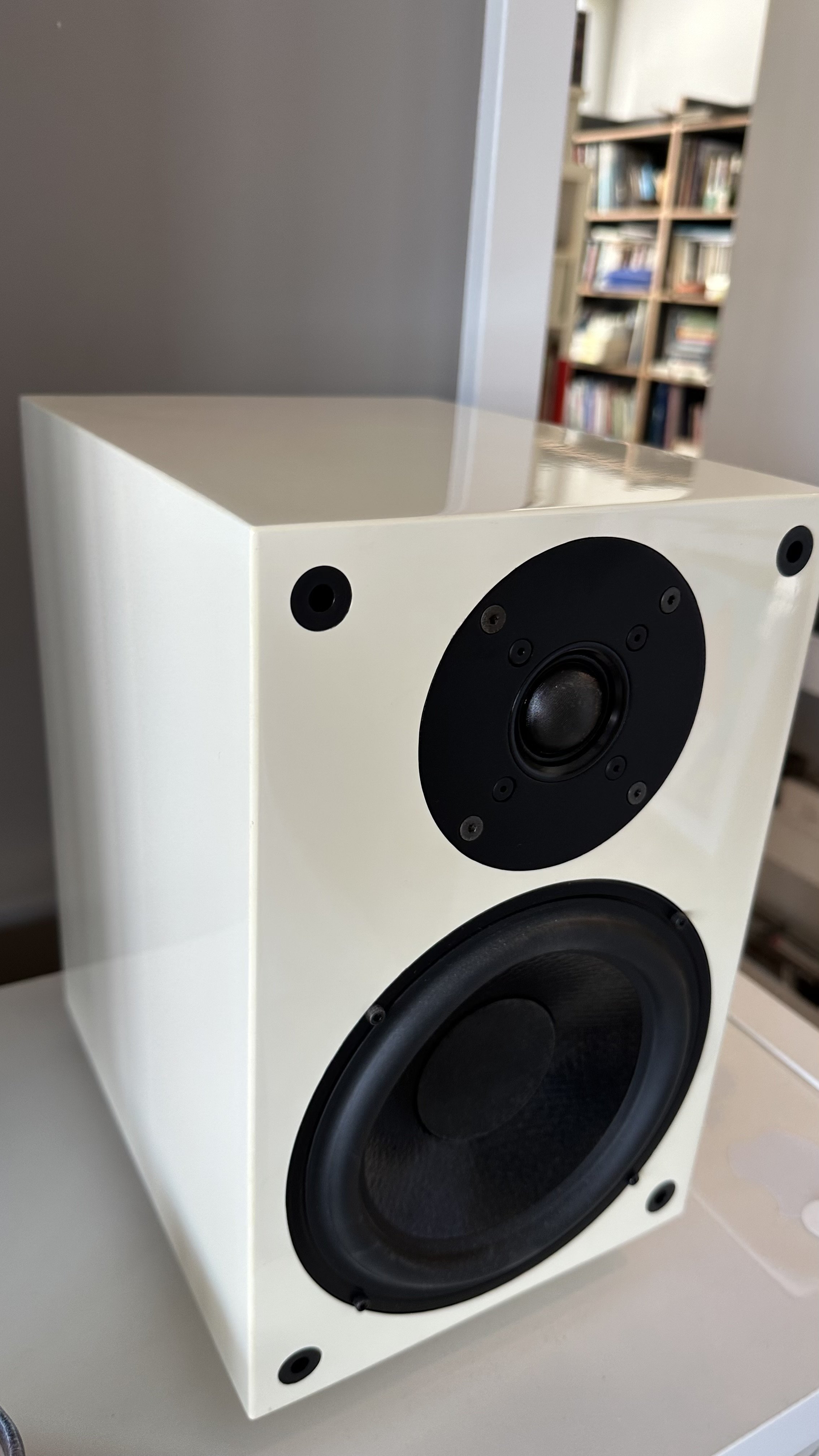 Maintains an excellent condition considering its age, especially as a bookshelf speaker with beautiful proportions and an ivory color that adds to its aesthetic appeal.