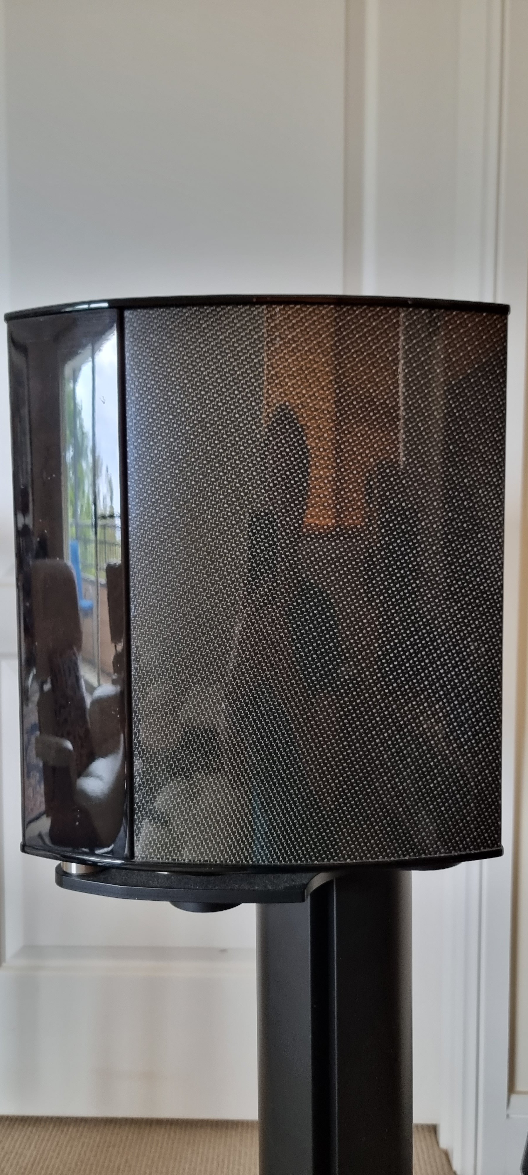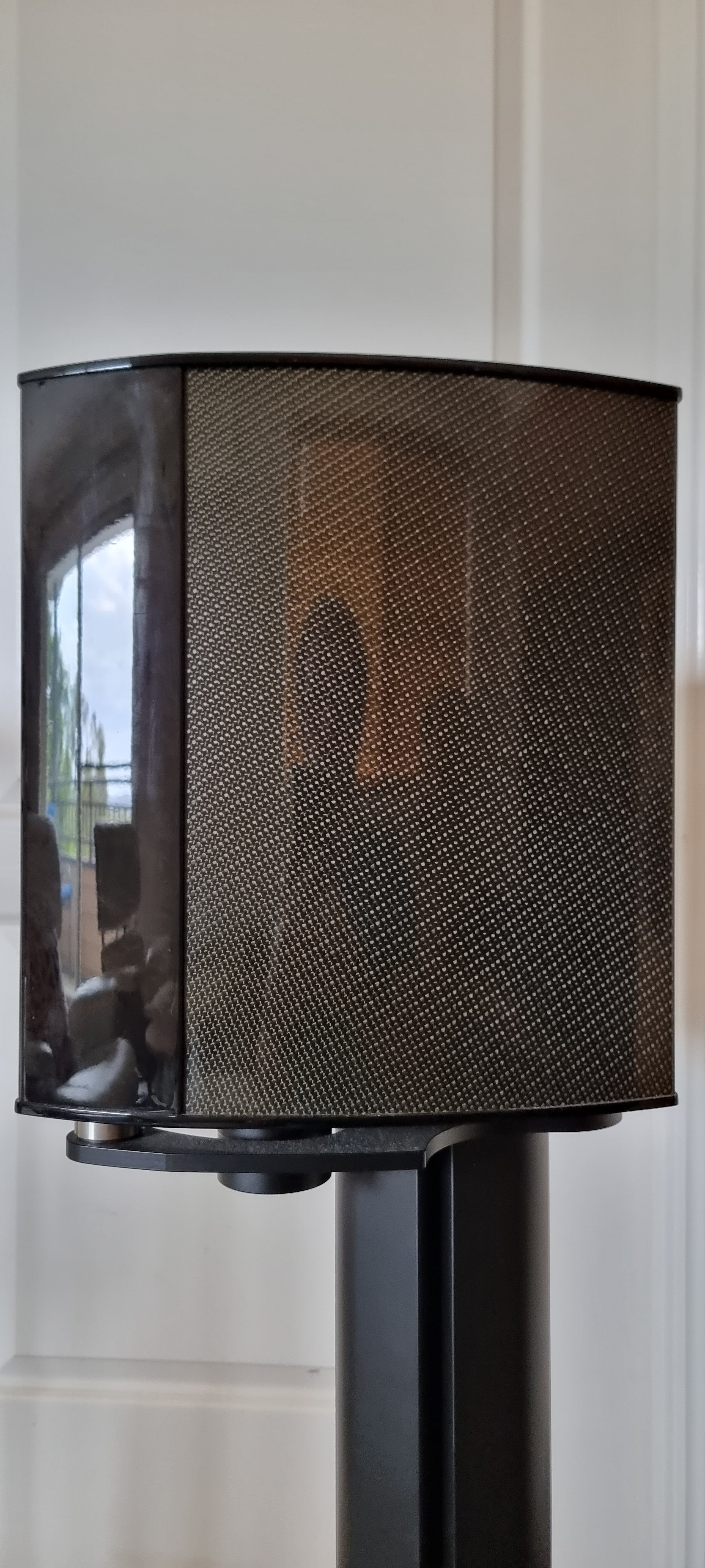 I purchased these 9 years ago from a guy in the UK, and he shipped them over, via Philippine Airlines. The speaker is integrated into the stand, so each one was in a huge cardboard box. One box somehow got slightly wet on the way over. When I took possession, the damp had watermarked the side and back of one speaker, and made the resin cloudy. A real bummer! BUT…. There was absolutely no damage to the drivers, or the electronics. The damage to one speaker (see pics) is entirely cosmetic. It in NO way impacts the performance of the speaker, and its rune fine the 9 years I’ve owned it.